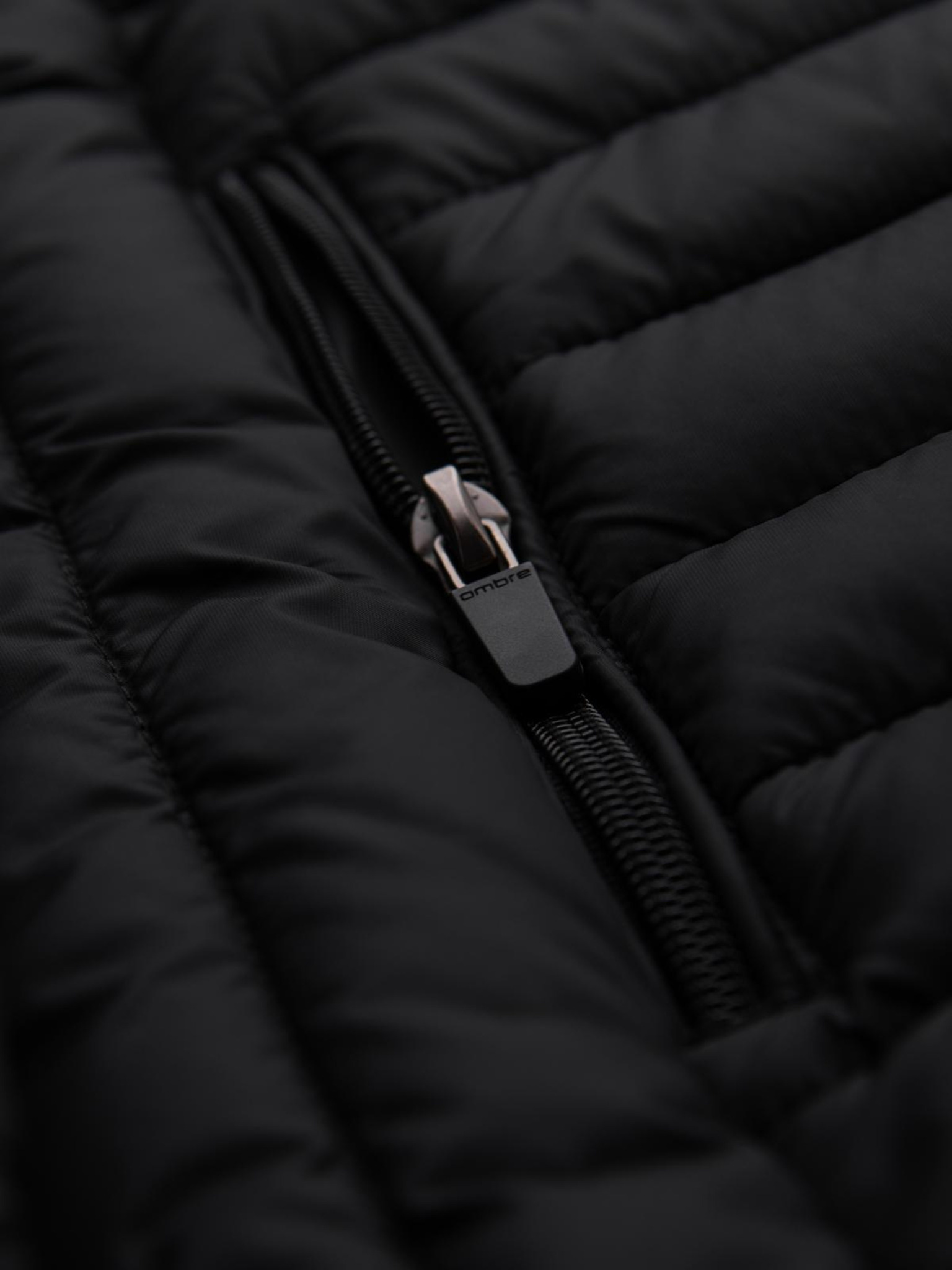 Klasická pánska prešívaná bunda s vreckom - čierna V1 OM-JALP-0295 Ombre Clothing