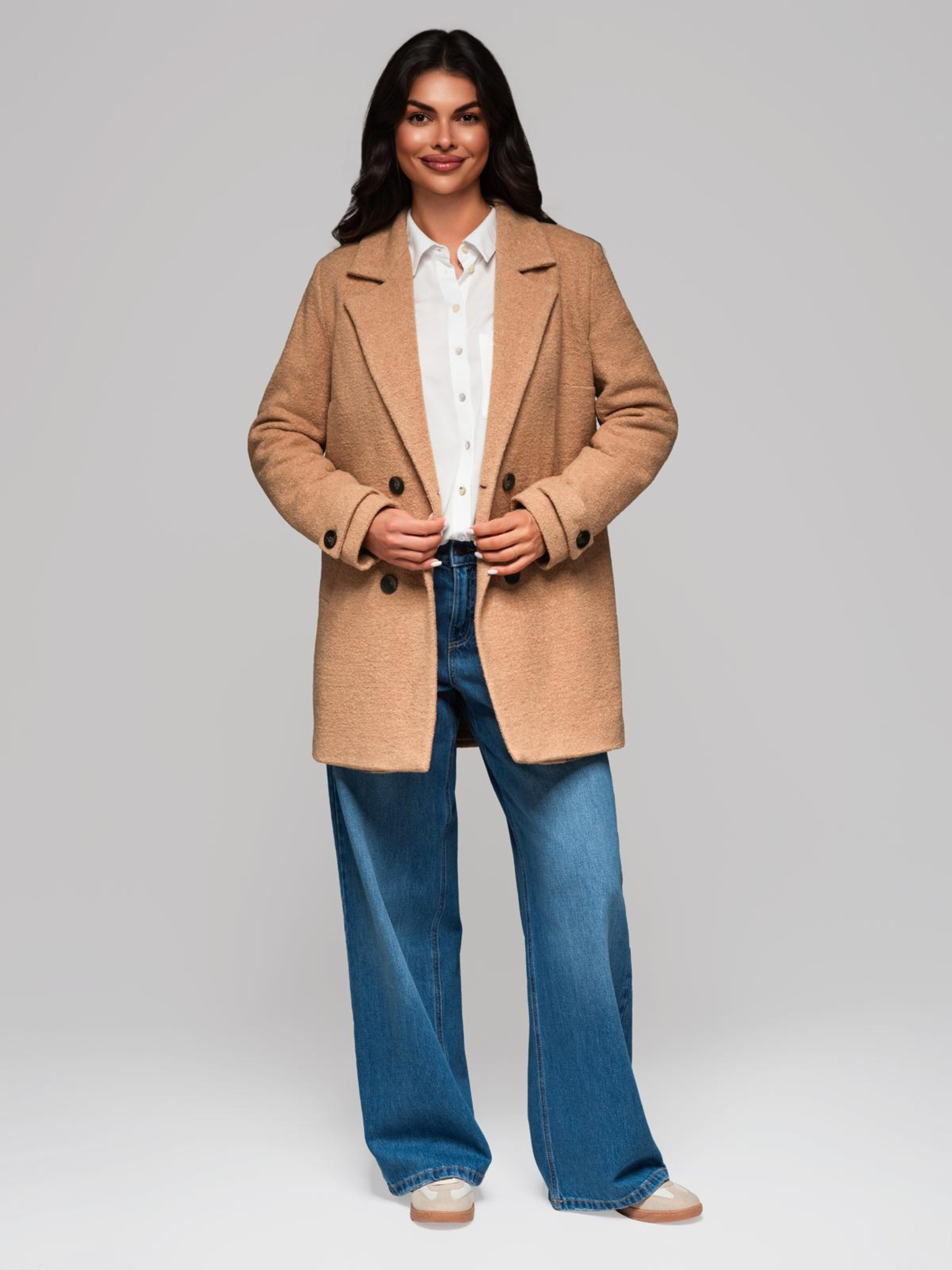 Módny dámsky kabát CLR042 - hnedý EDOTI