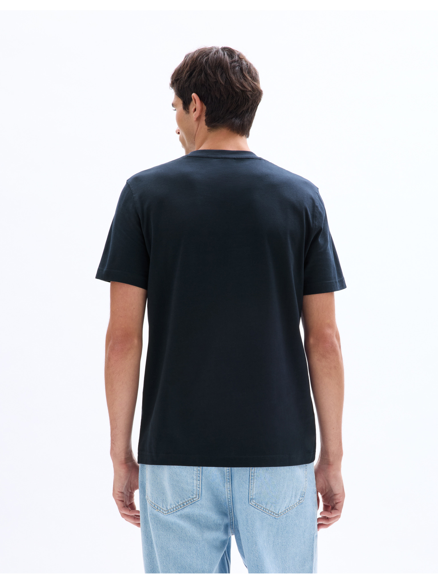 Pánske tričko s pracím efektom - tmavo modré V2 OM-TSWT-0116 Ombre Clothing