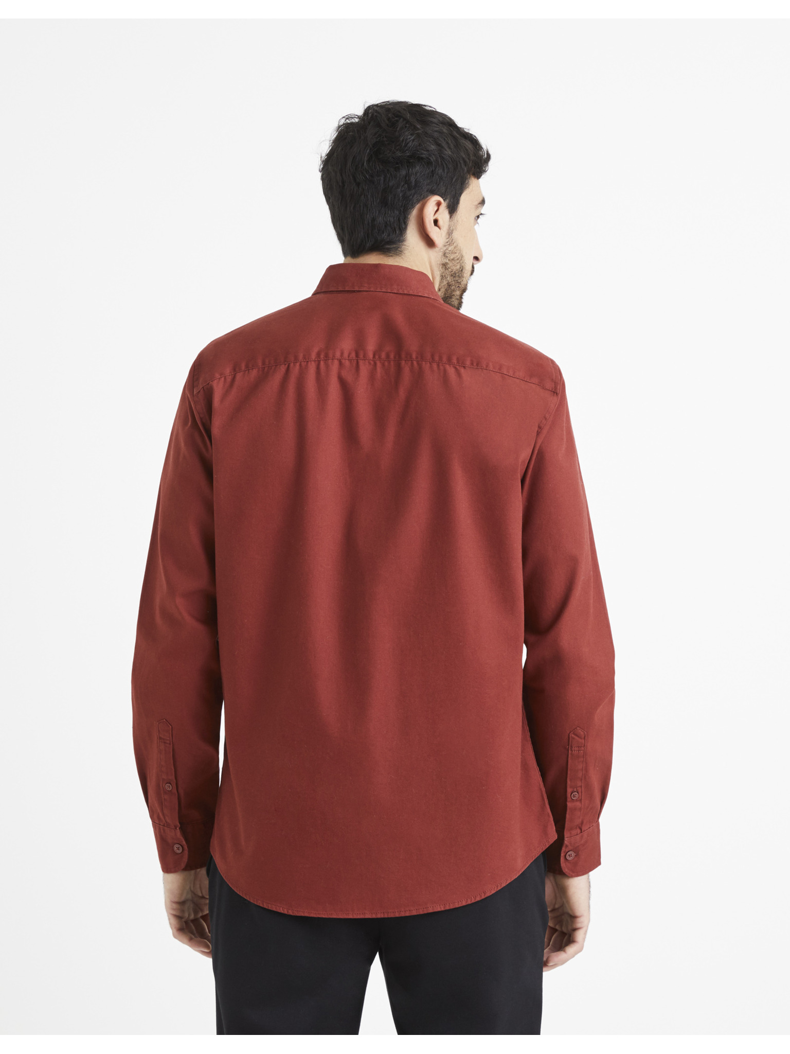 Vínová pánska košeľa s vreckom Celio
