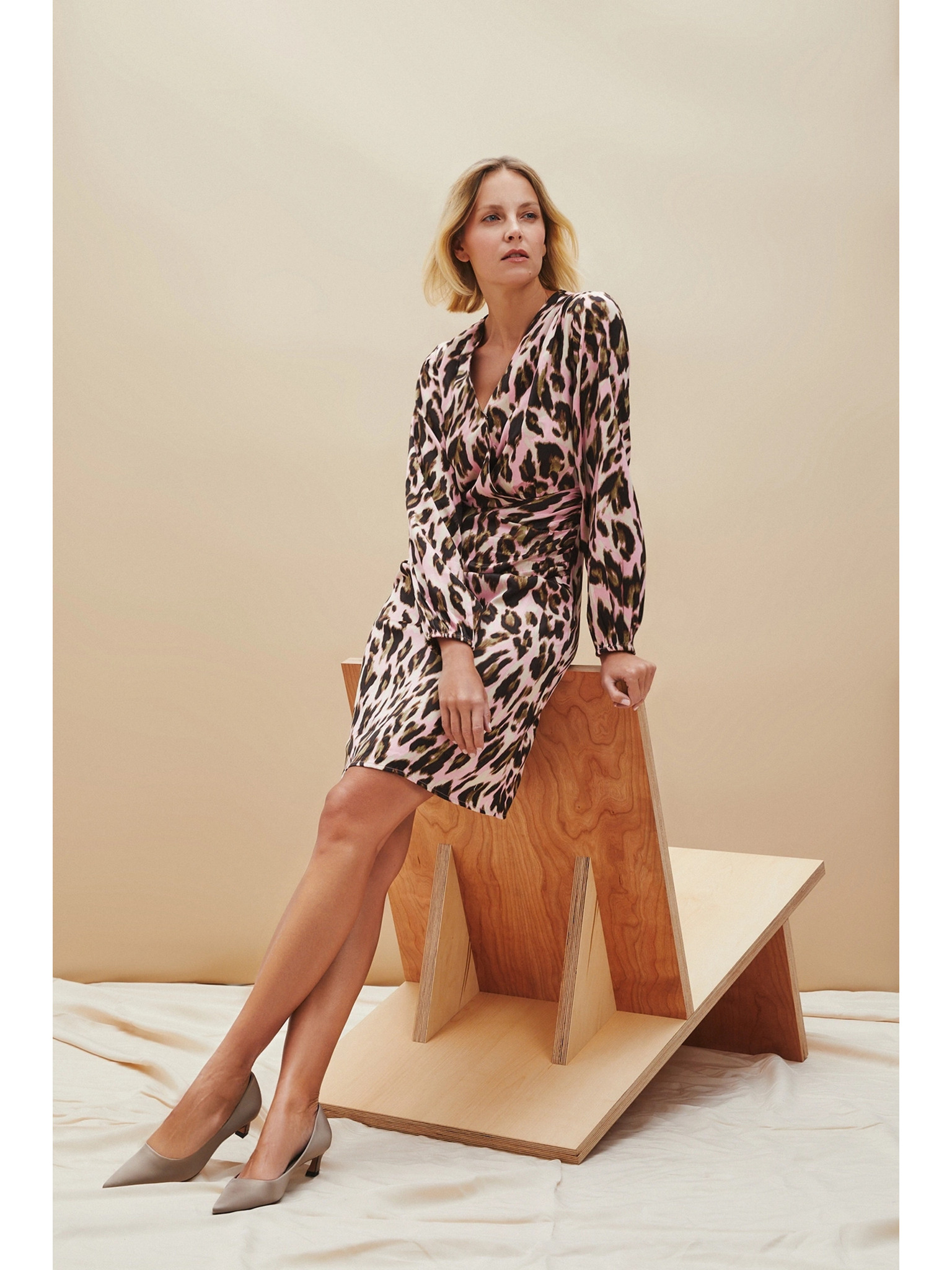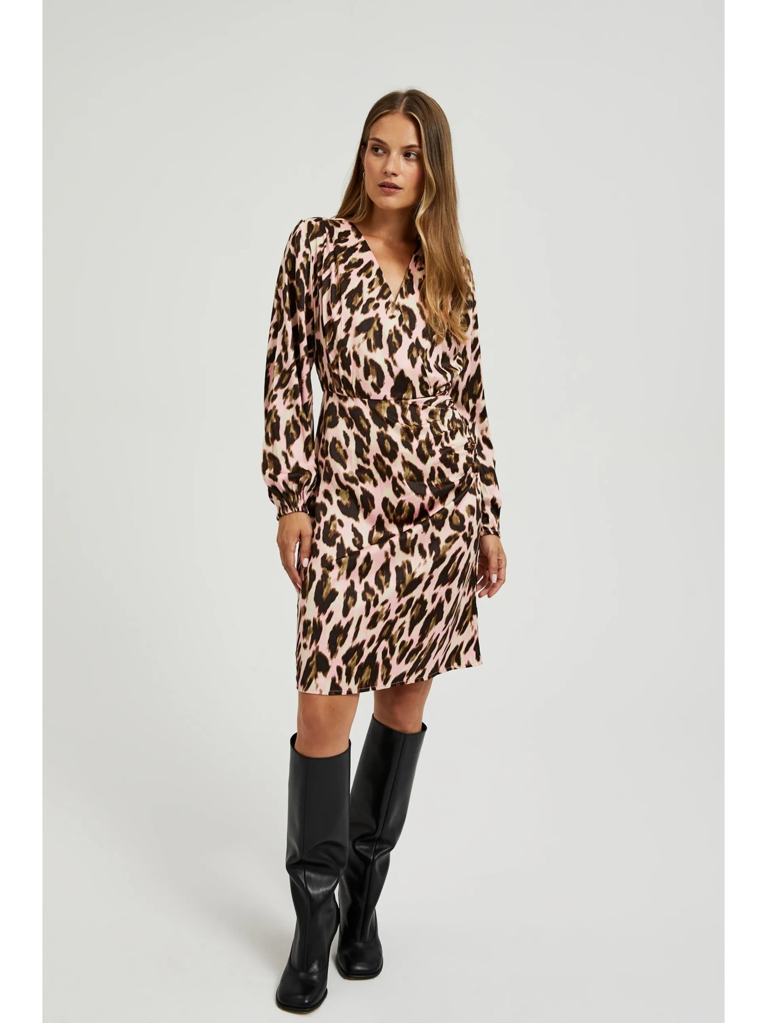 Béžové šaty s leopardím vzorom Moodo