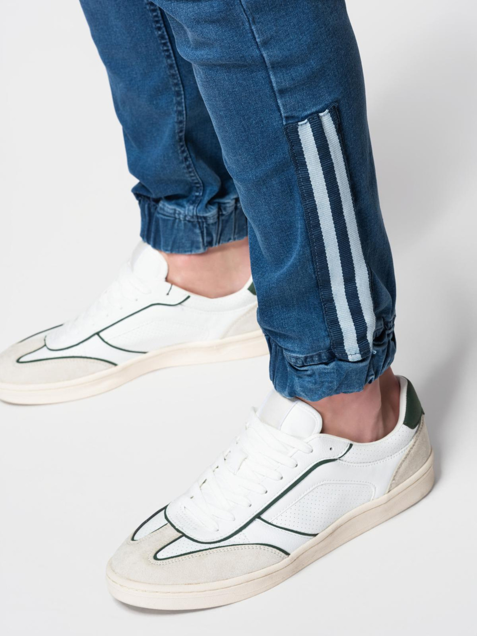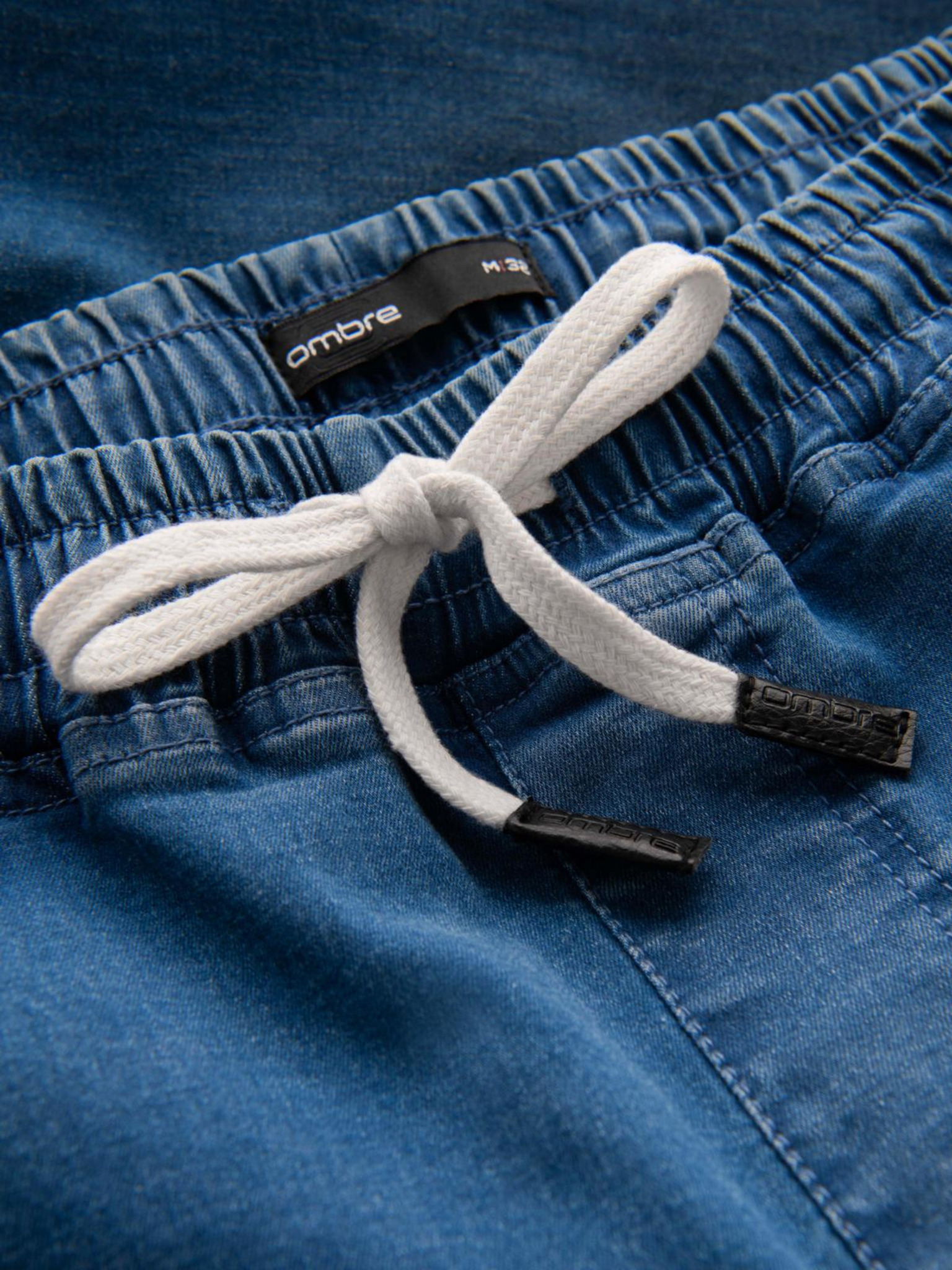 Pánske džínsové tepláky s lemovaním - tmavomodré V4 OM-PADJ-0156 Ombre Clothing