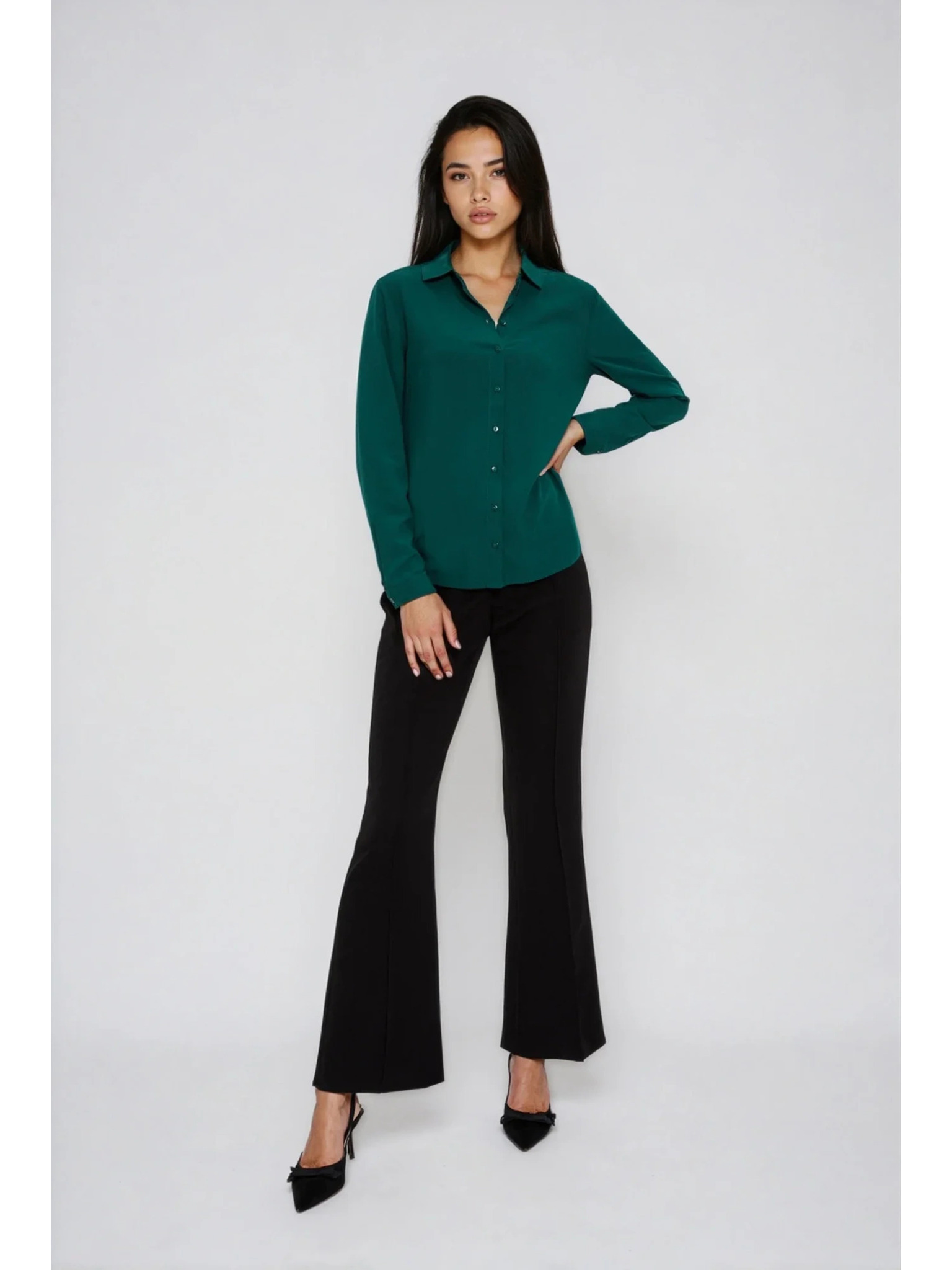 Smaragdová blúzka s ozdobnými gombíkmi Moodo