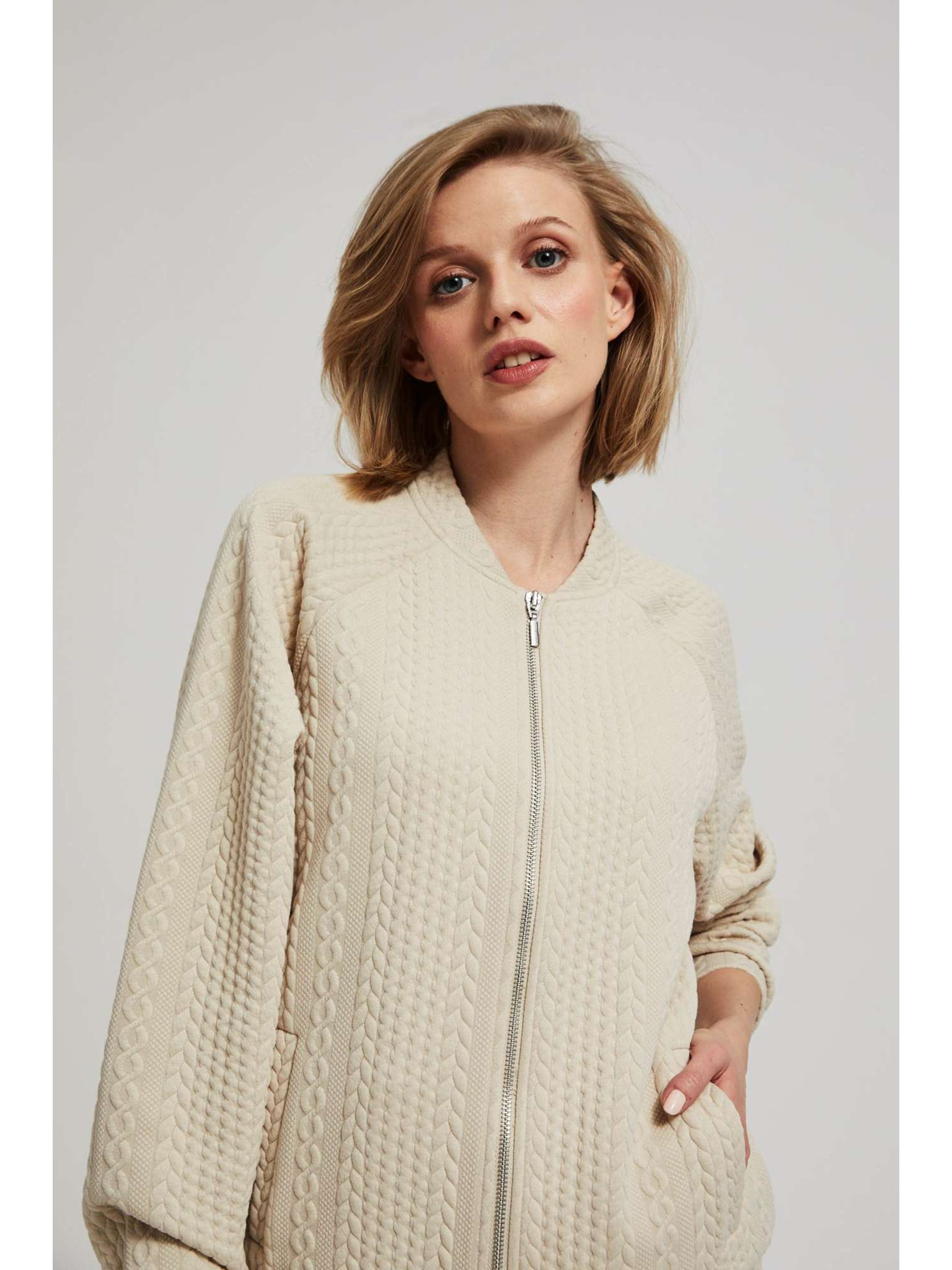 Mikina na zips béžová Moodo
