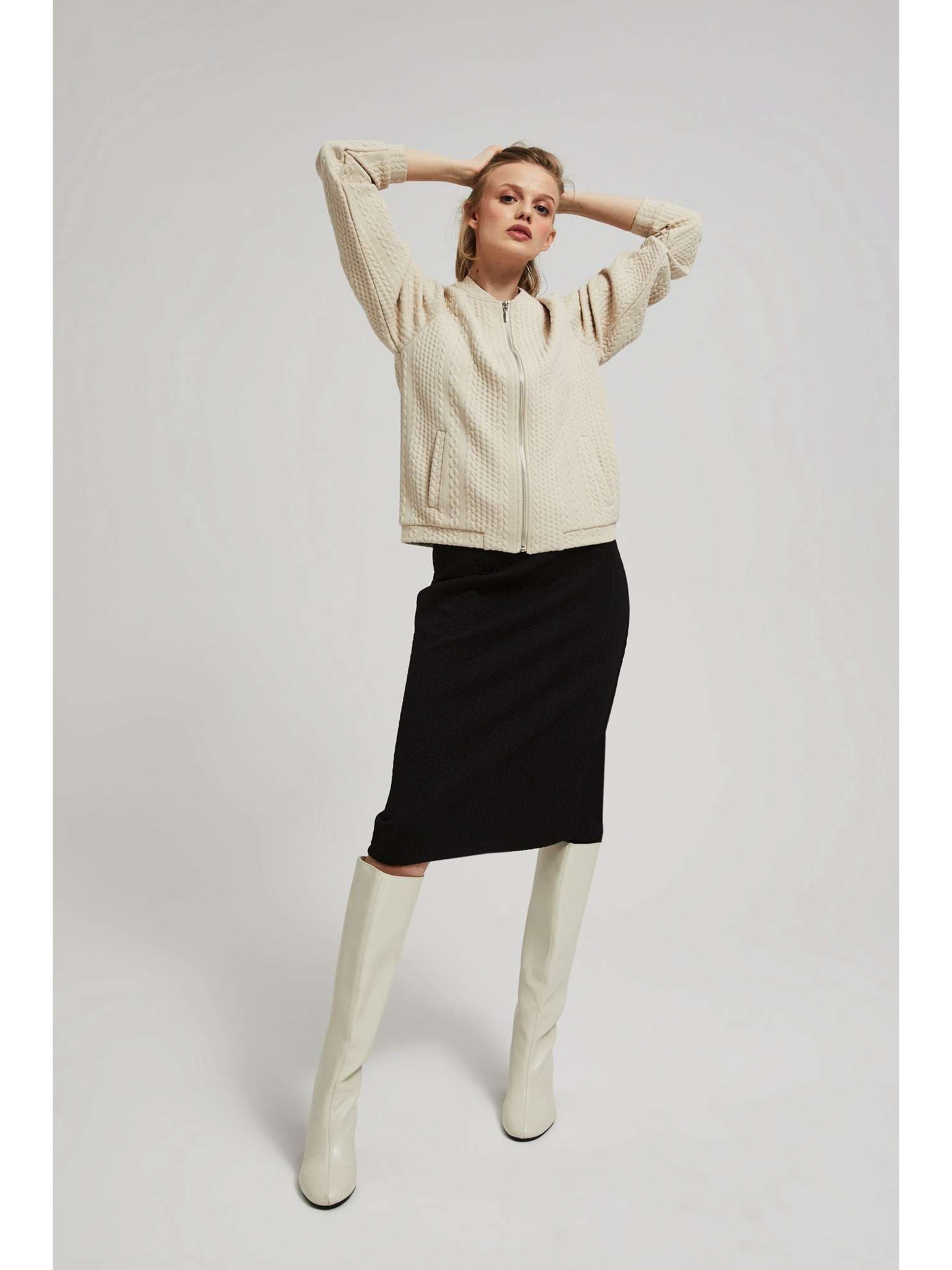 Mikina zo štruktúrovaného materiálu biela Moodo