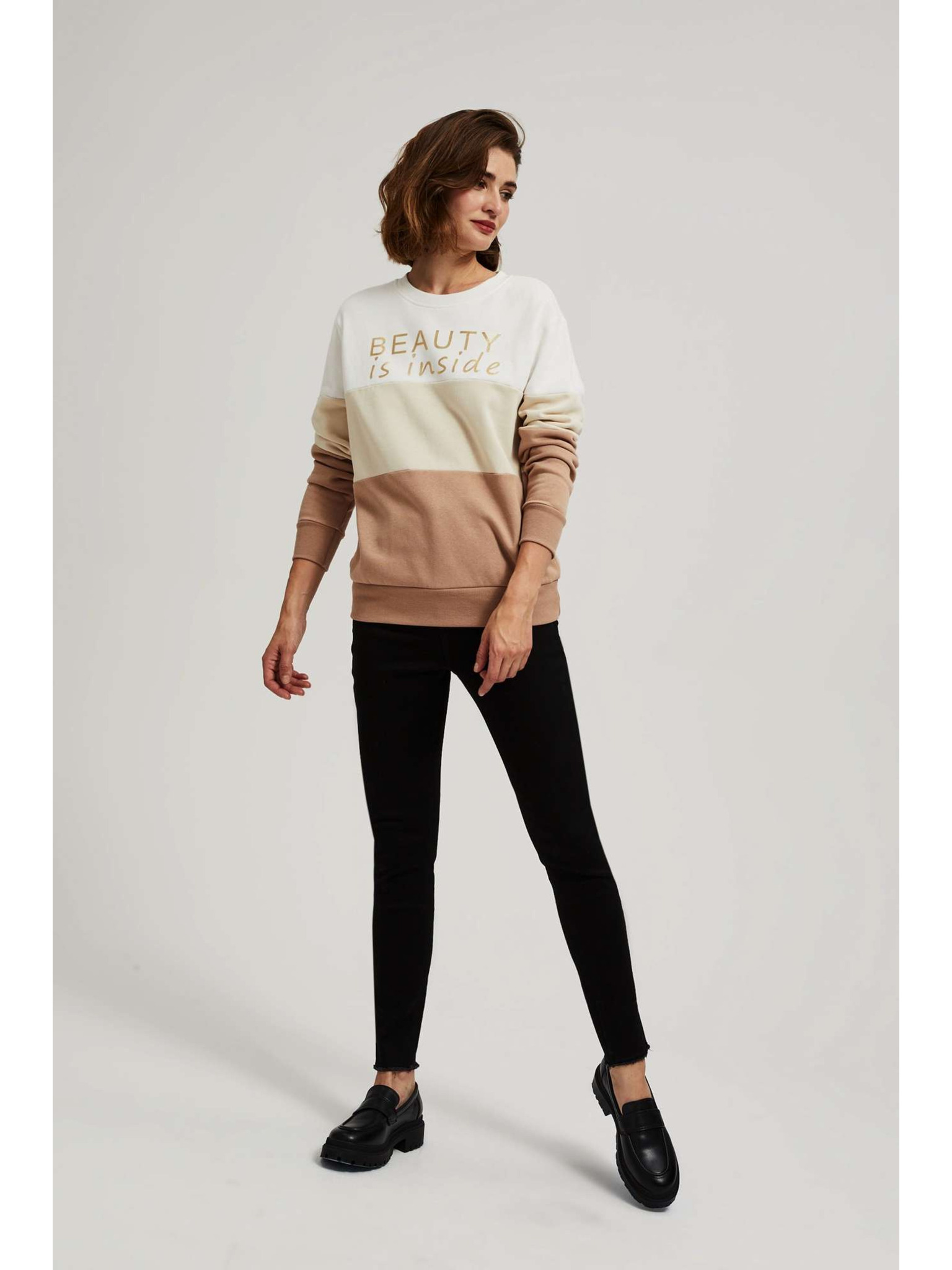 Mikina so širokým golierom pieskovej farby Moodo