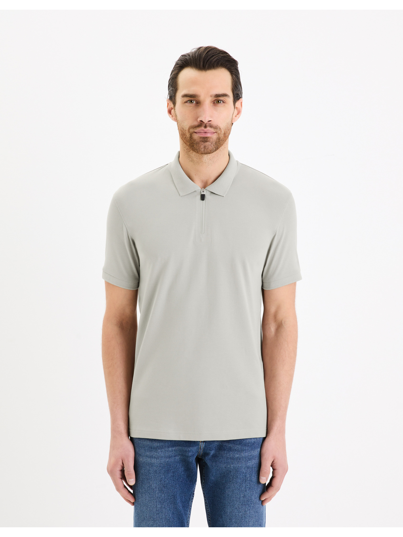 Pánska polokošeľa bez gombíkov - svetlo sivá