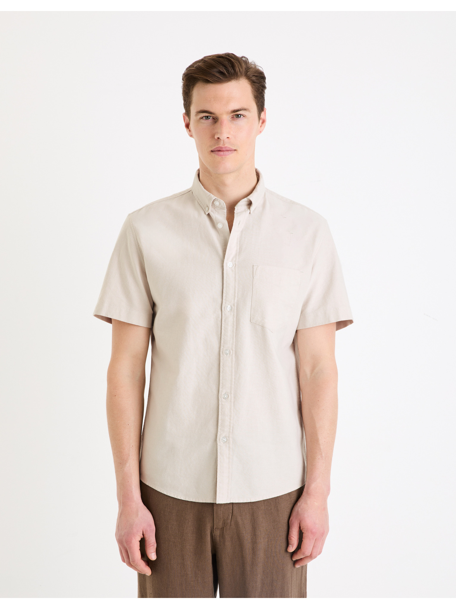Béžová pánska ľanová košeľa Celio Damopoc
