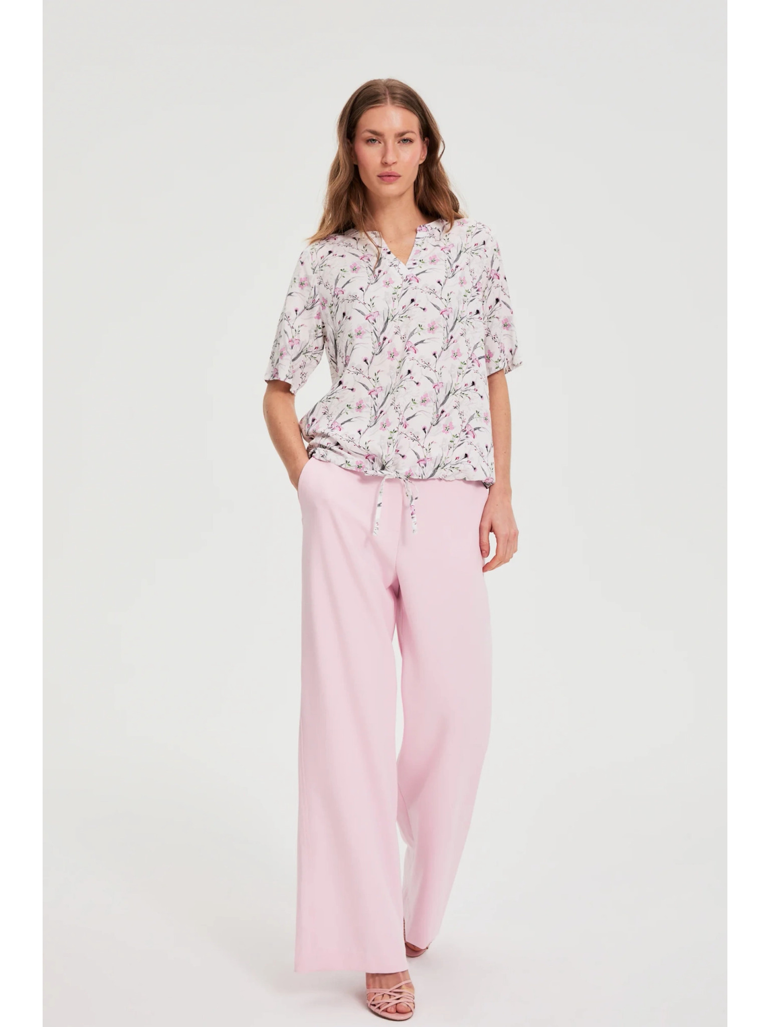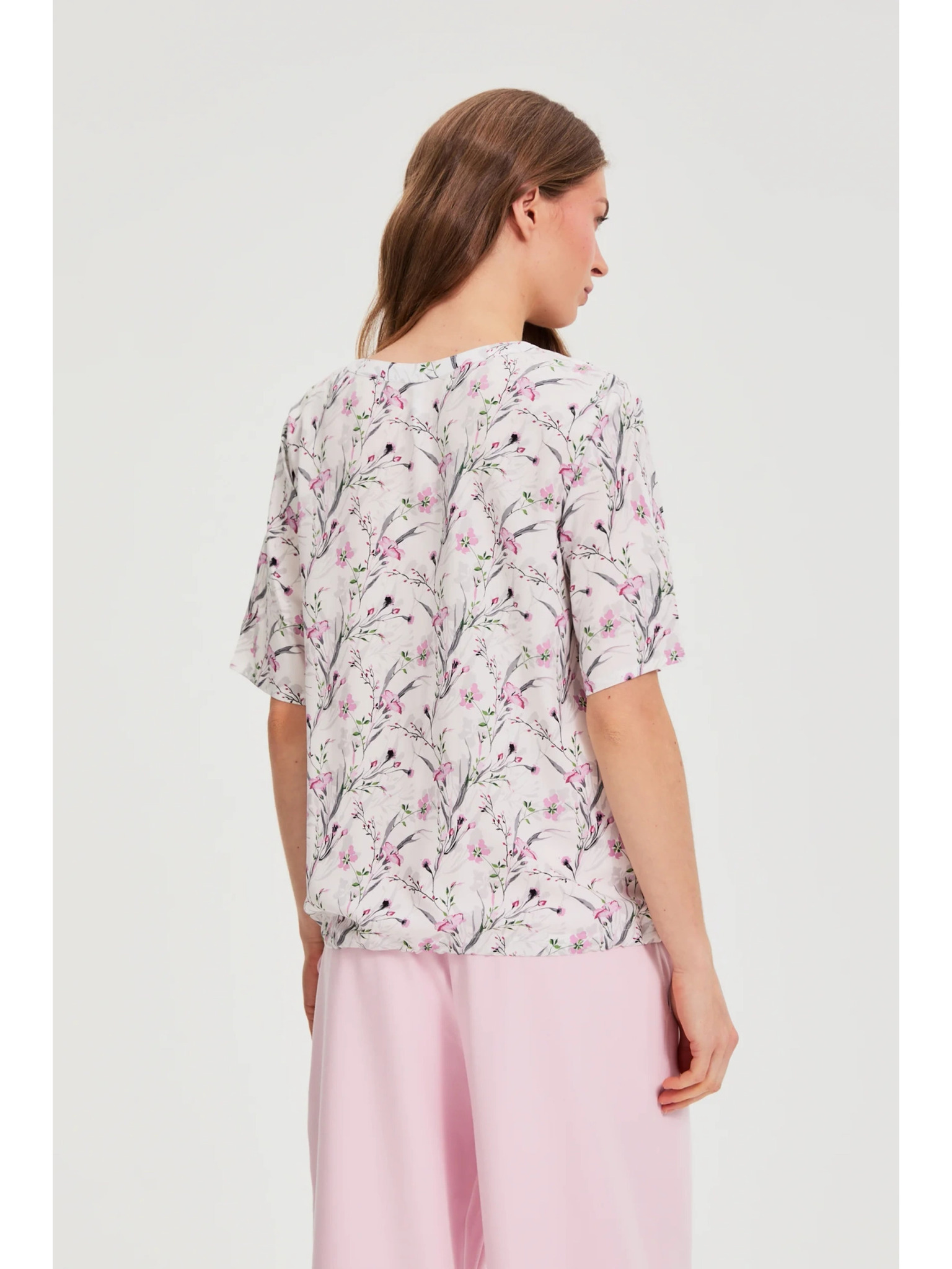 Košeľa z viskózy s kvetmi ružová Moodo