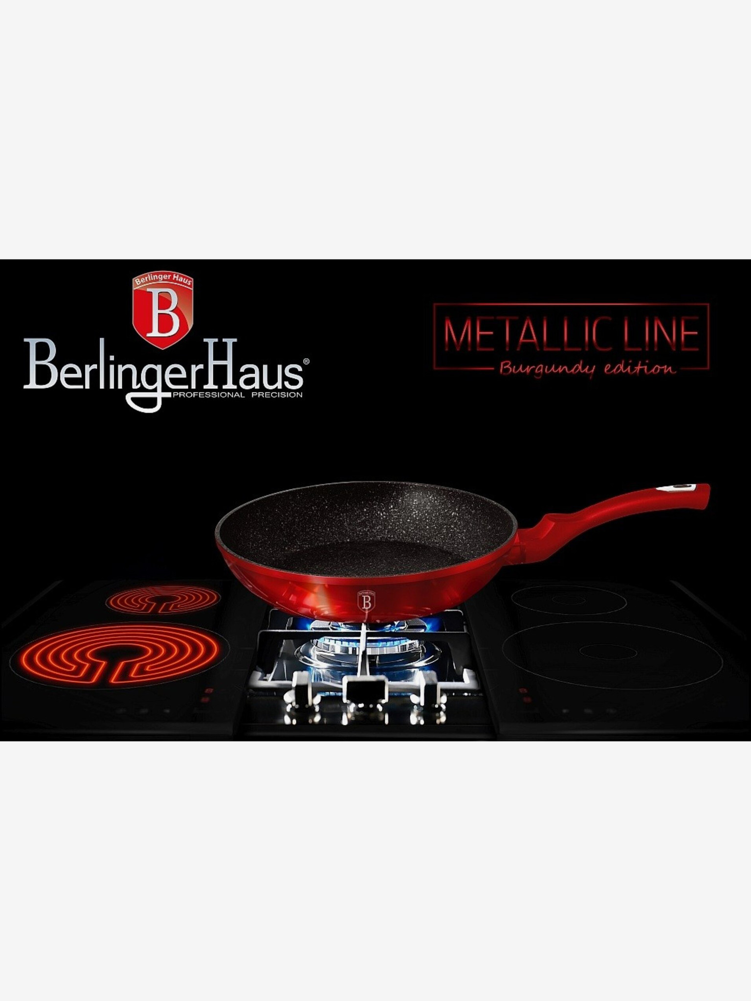 Panvica s odnímateľnou rukoväťou sada 5 ks Burgundy Metallic Line gril BERLINGERHAUS