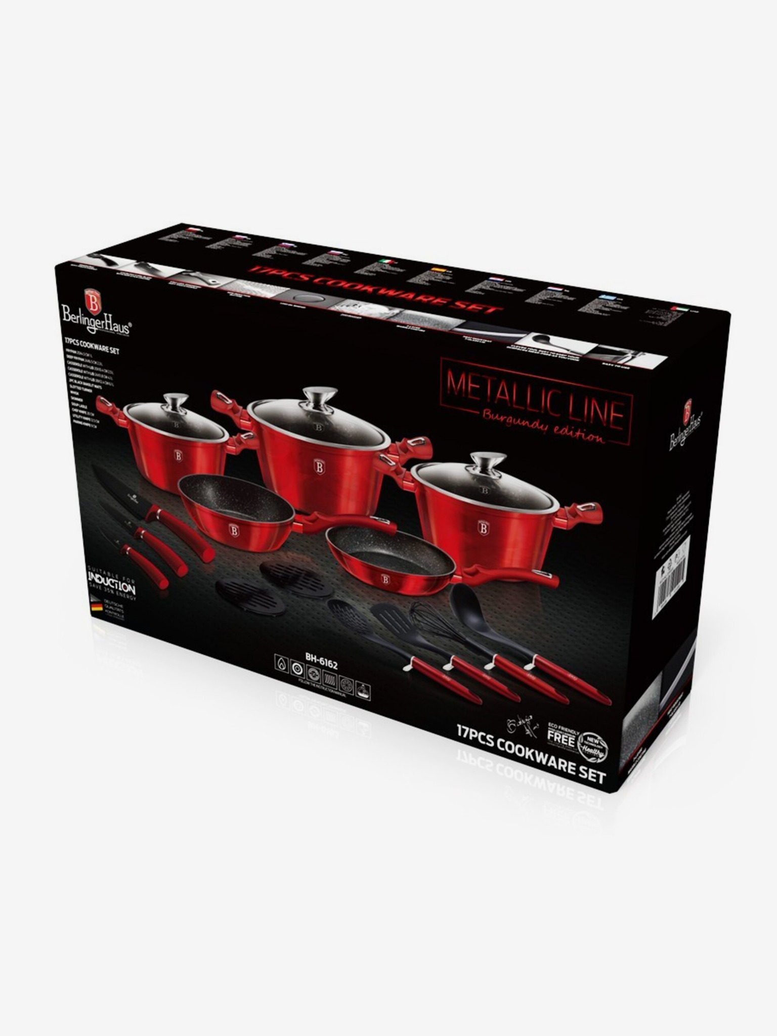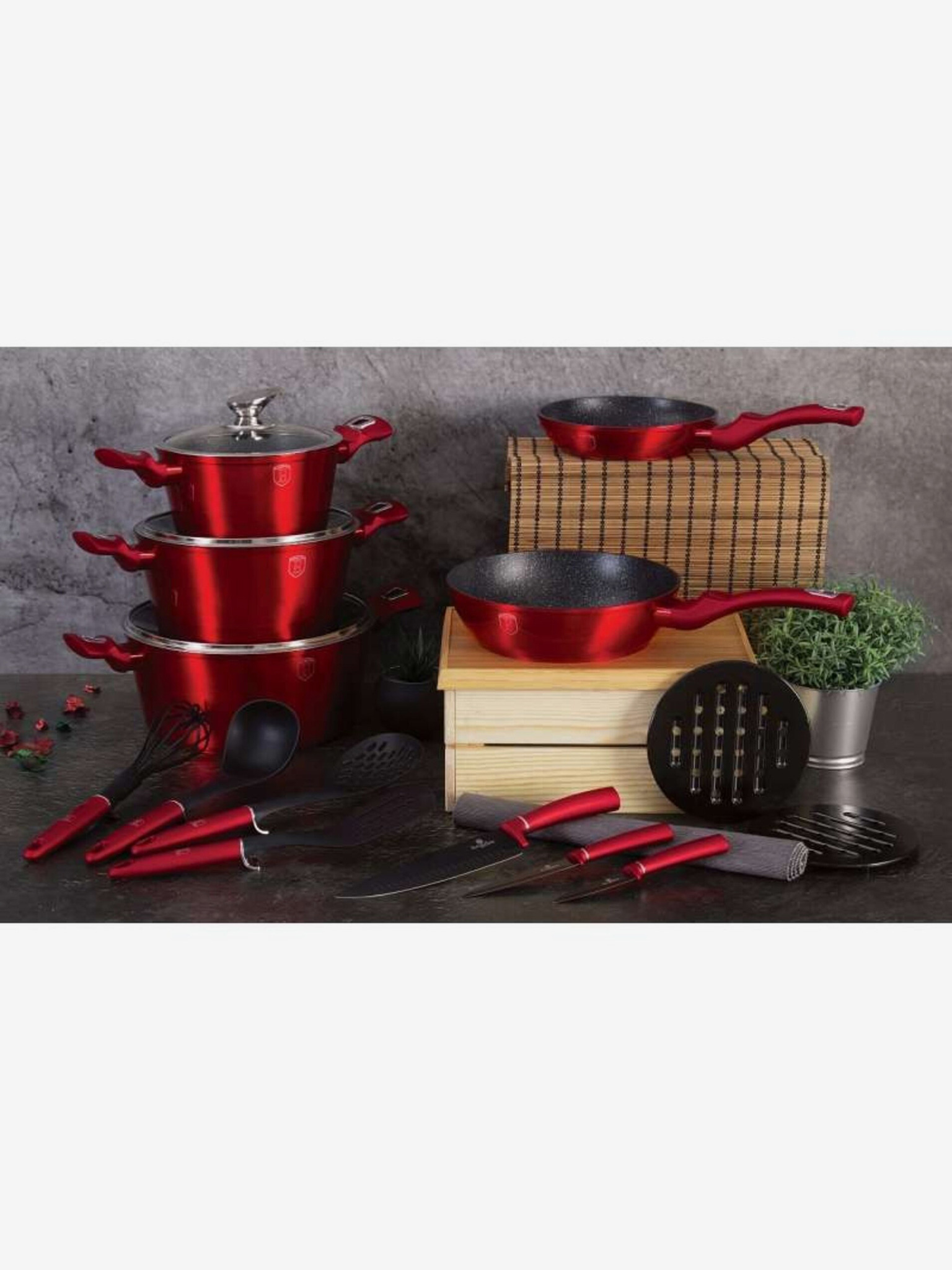 Panvica s odnímateľnou rukoväťou sada 5 ks Burgundy Metallic Line gril BERLINGERHAUS