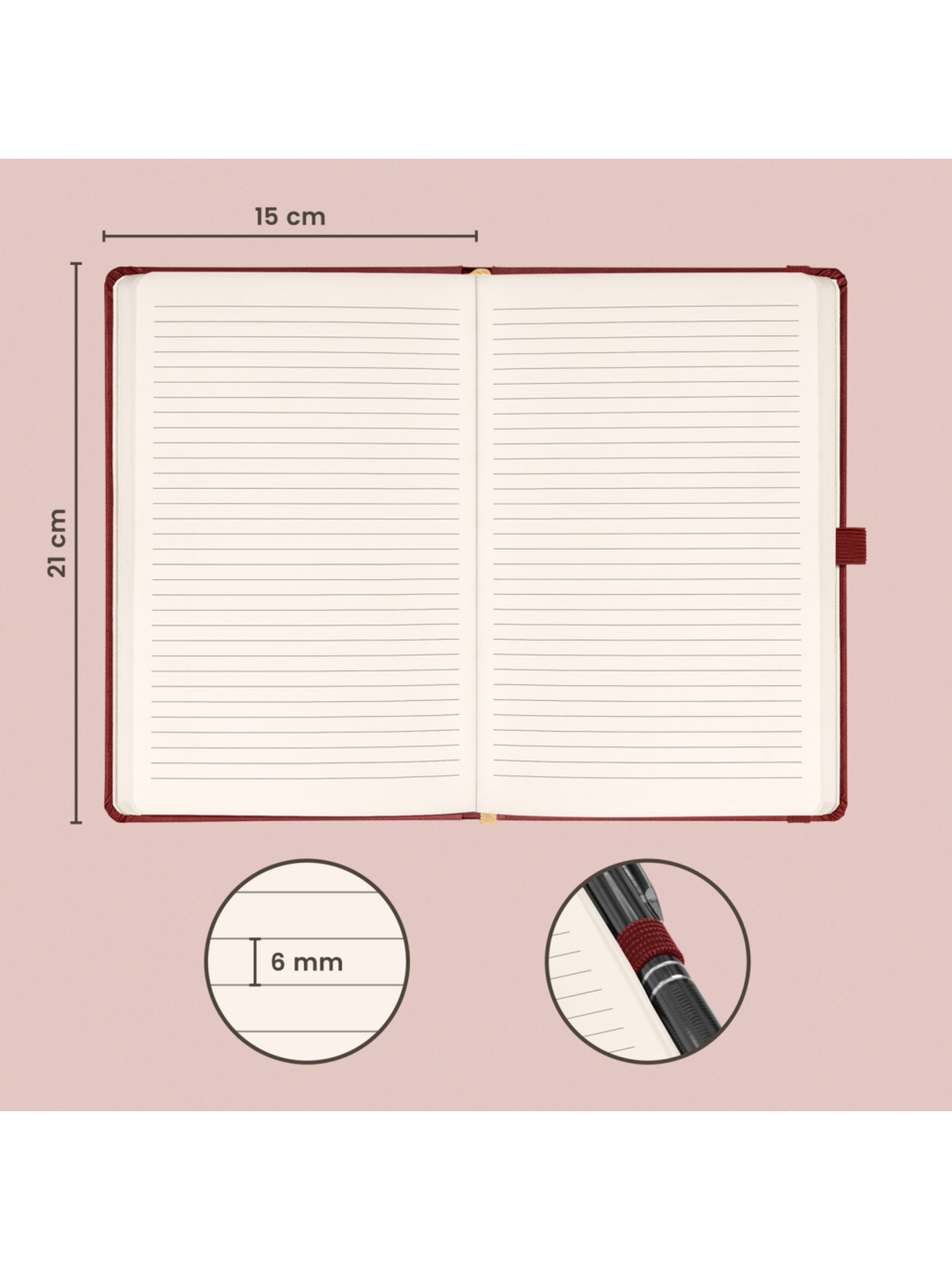 NOTIQUE Notes Balacron, bordová farba, s bodkami, 15 x 21 cm