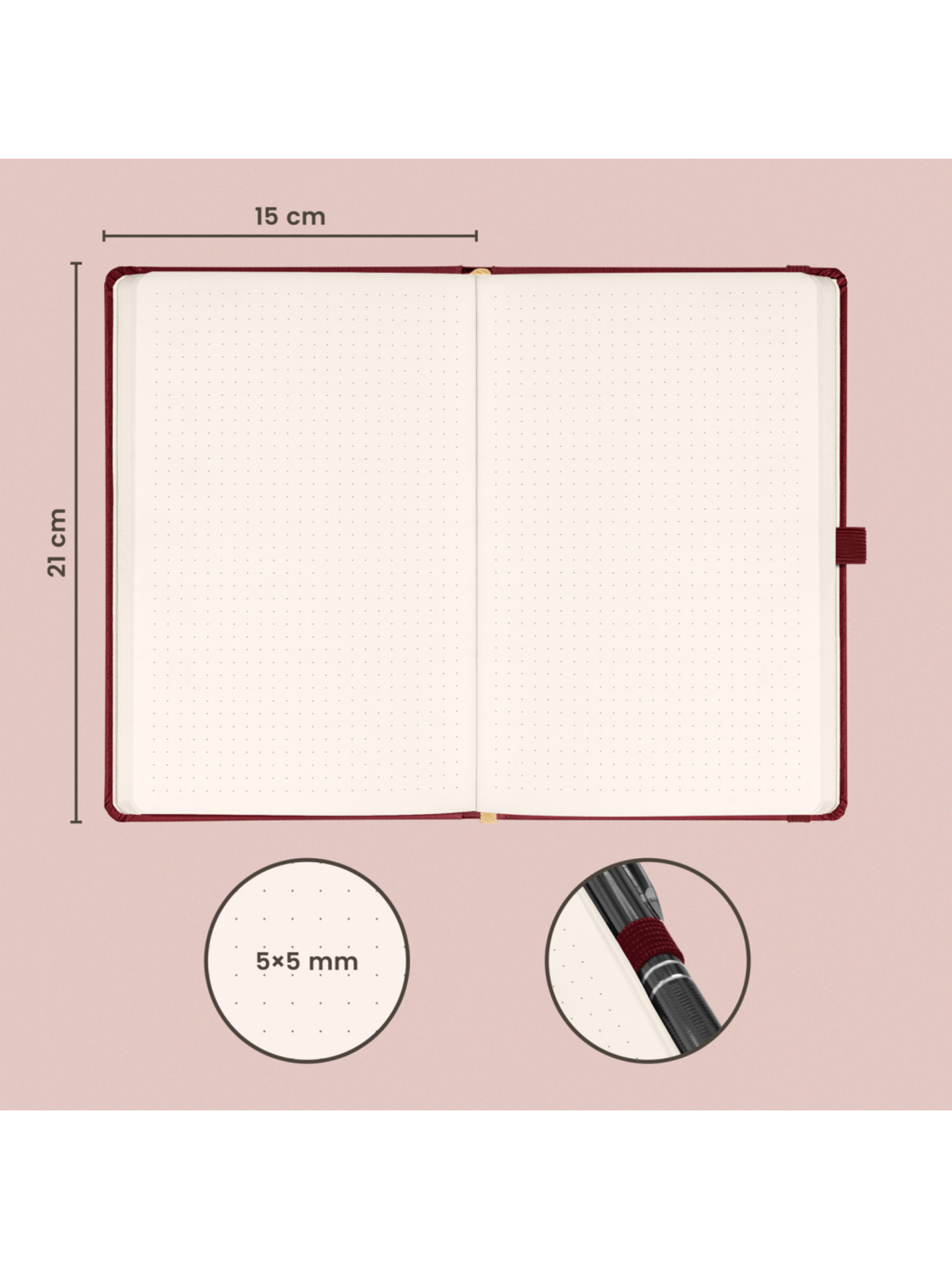 NOTIQUE Notes Aprint Neo, bordová, bodkovaná, 15 x 21 cm
