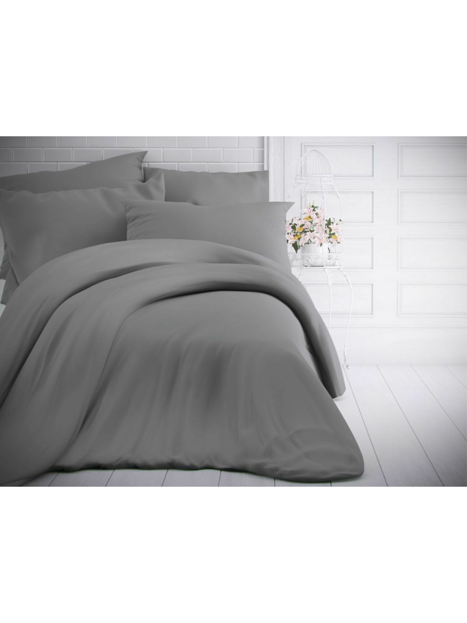 Francúzska jednofarebná bavlnená posteľná bielizeň 240x200, 70x90cm sivobiela