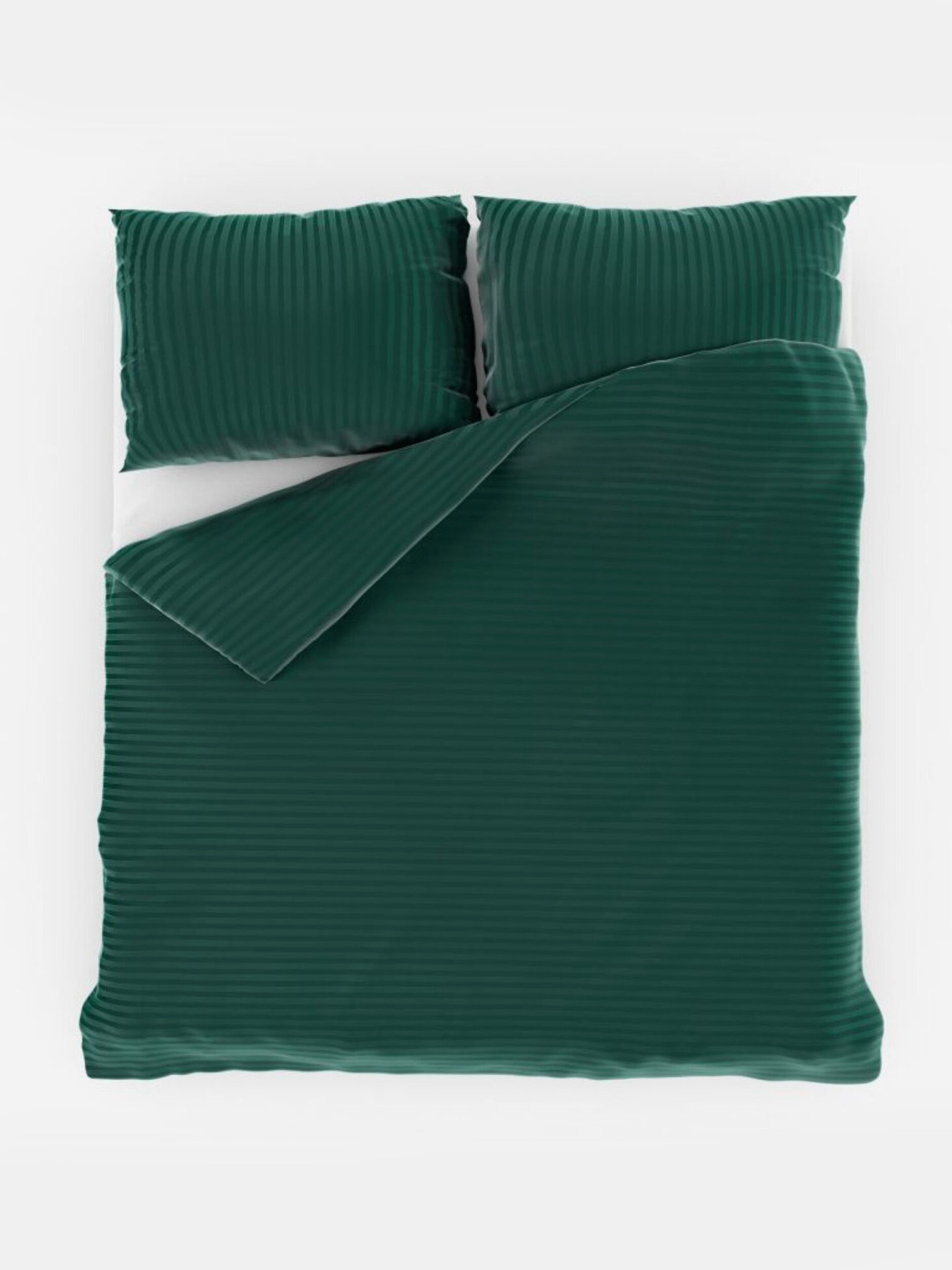 Francúzske saténové predĺžené posteľné obliečky s prúžkom 1+2, 240x220, 70x90cm TMAVOZELENEJ