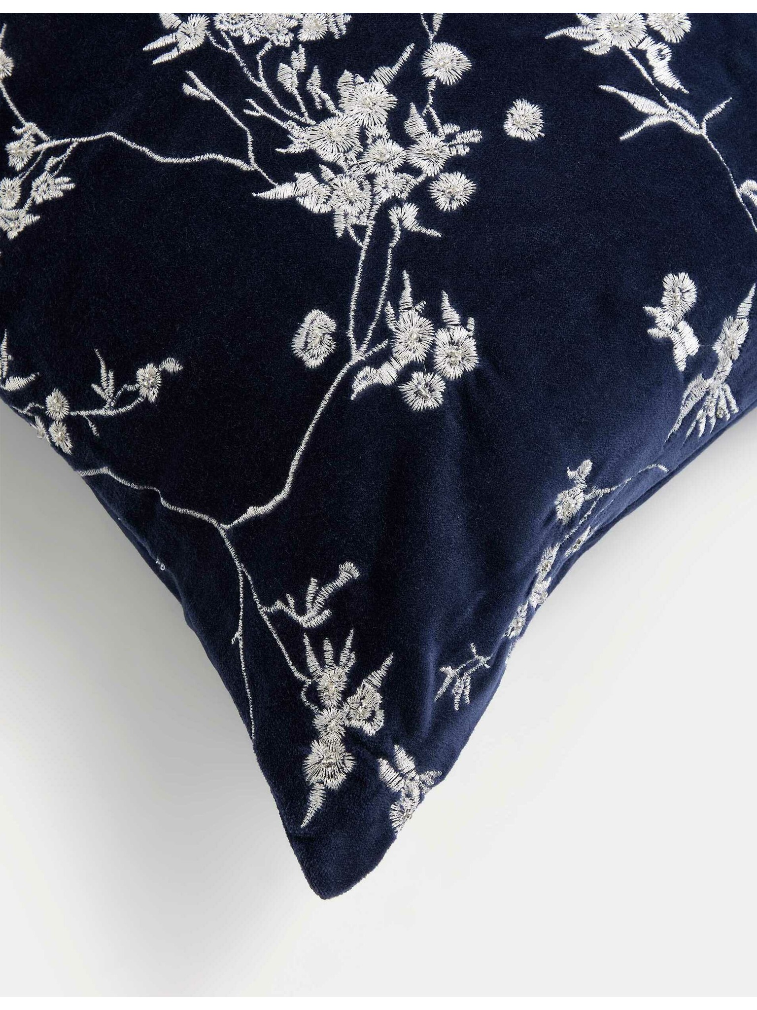Zamatový zdobený vankúš s vtáčim motívom Marks & Spencer námorná modrá