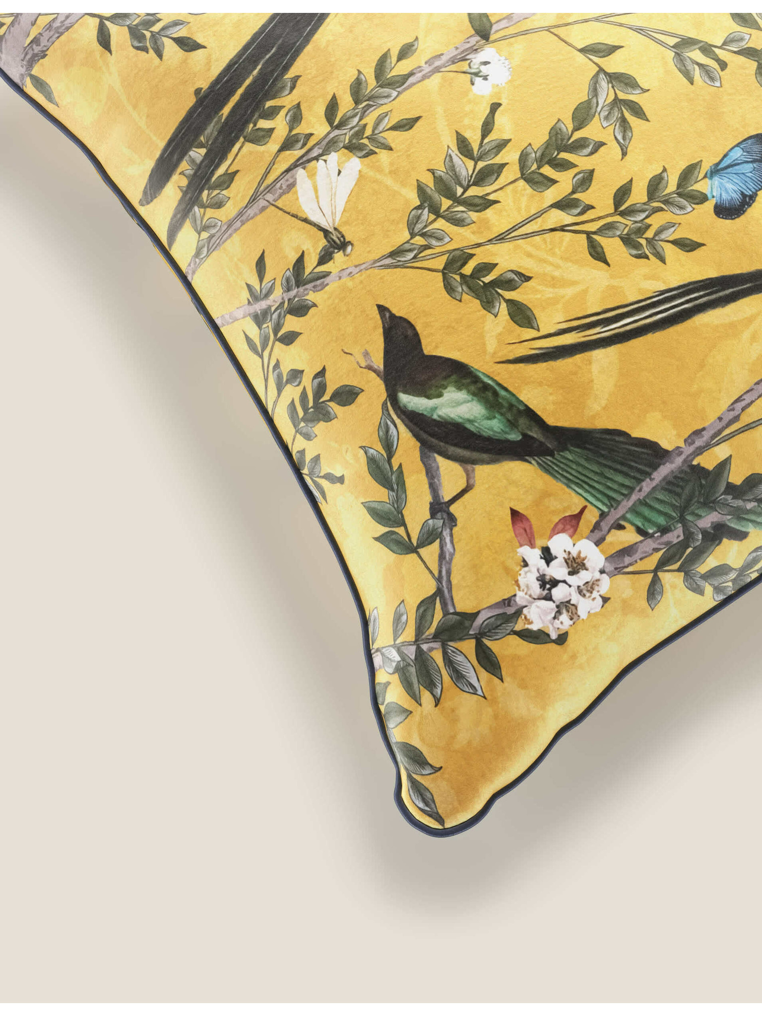 Zamatový vankúš s vtáčikmi Marks & Spencer námorná modrá