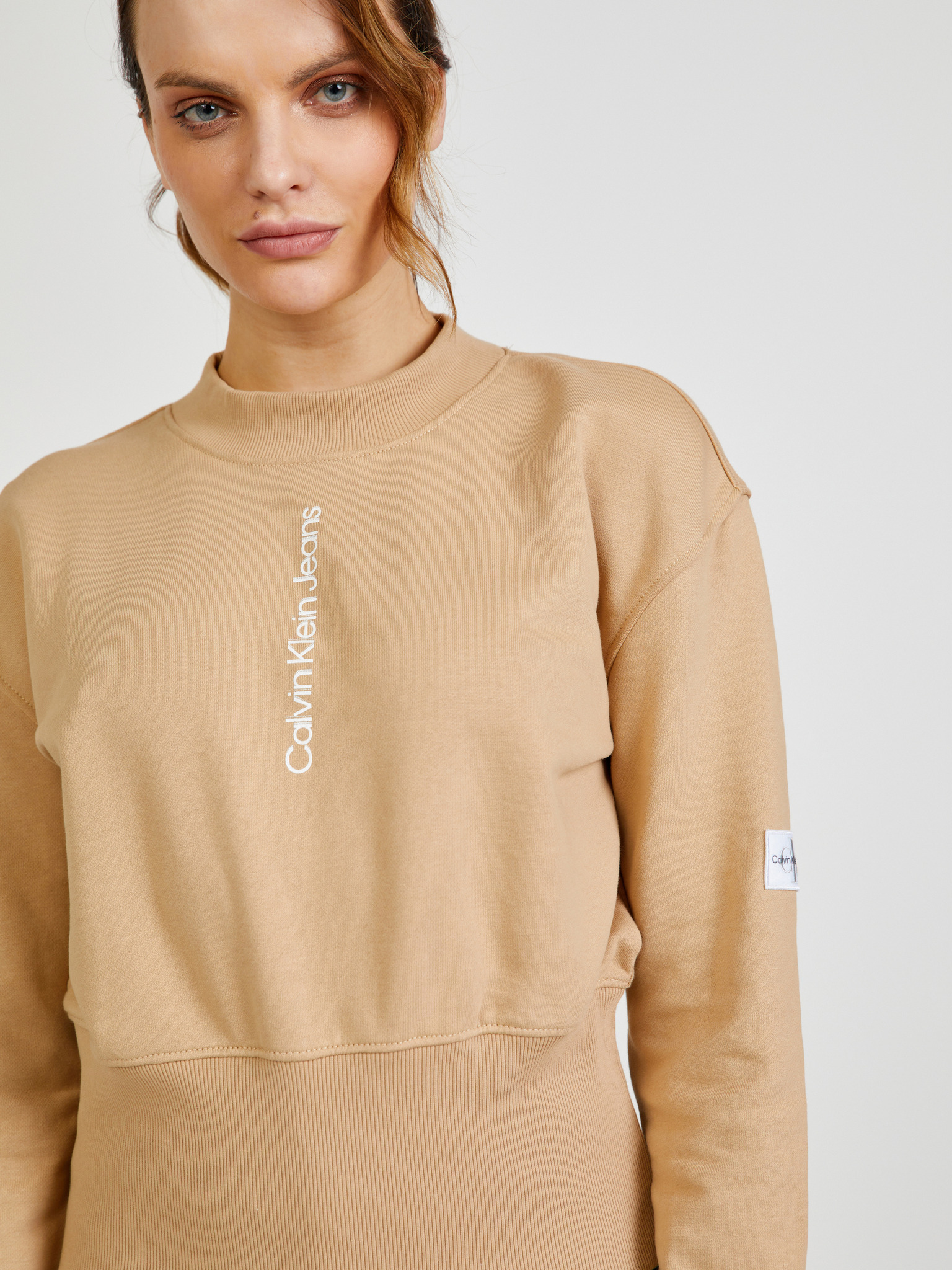 Mikina so širokým golierom pieskovej farby Moodo
