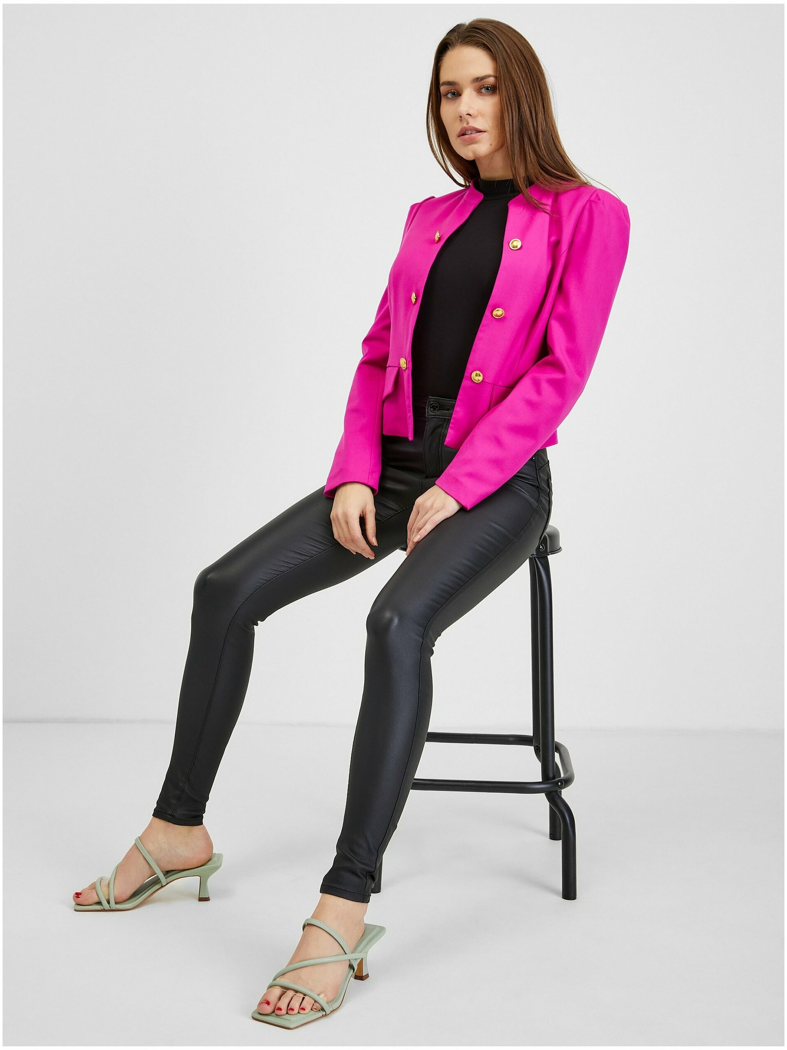 Ružové jednoradové sako s dlhým rukávom Moodo