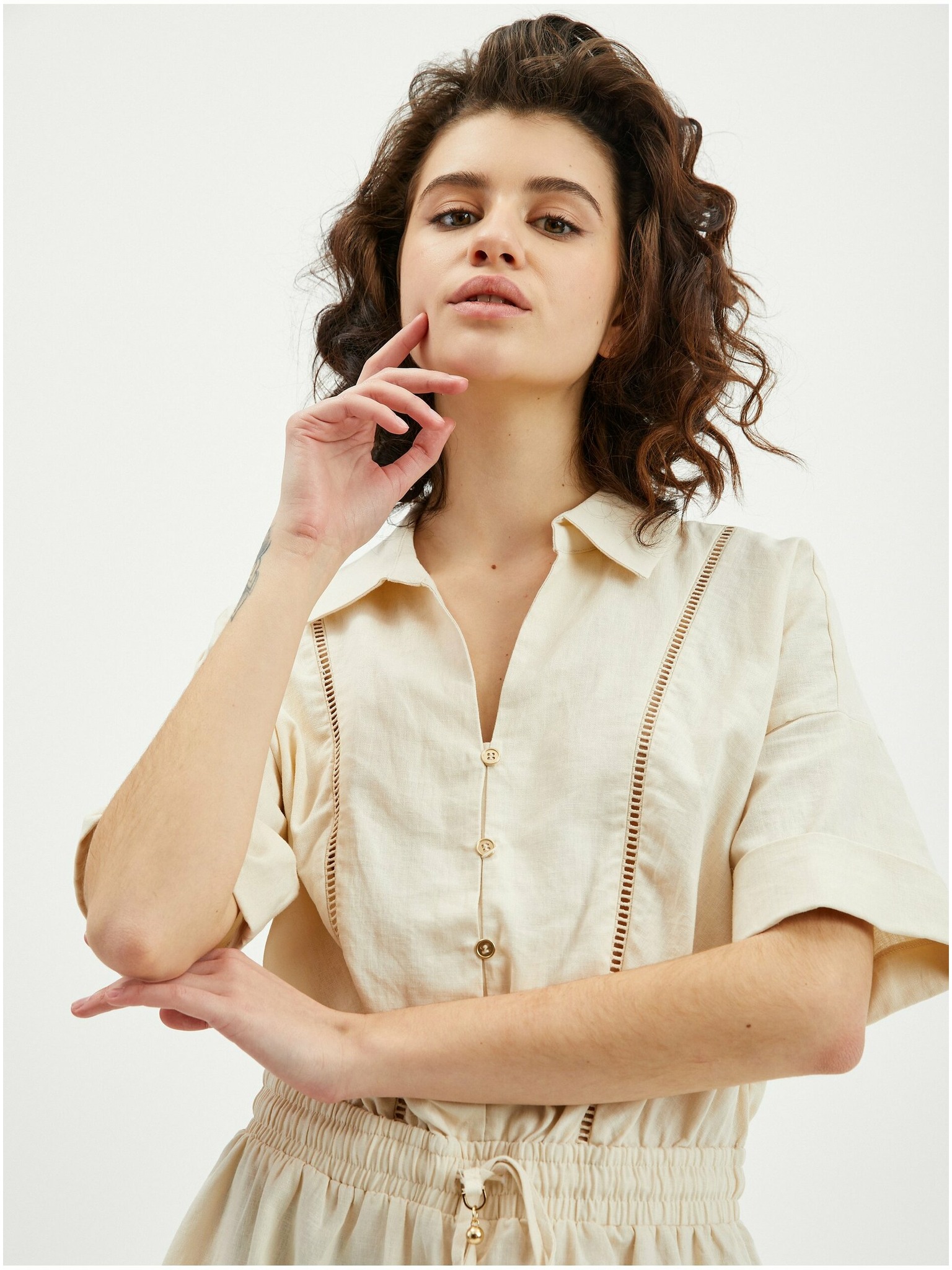 Béžový dámsky plátený overal ORSAY