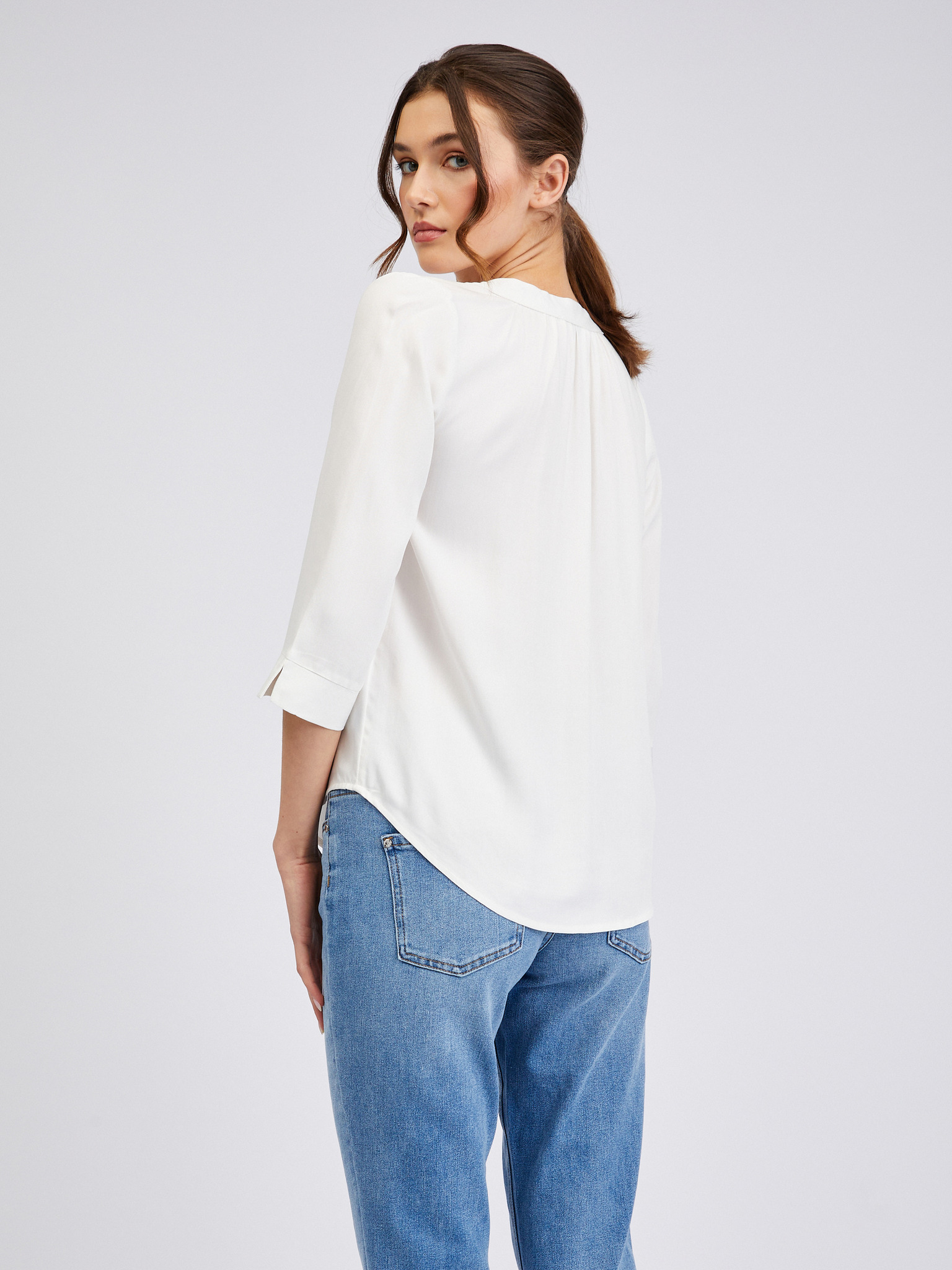 Dámska biela blúzka so stojačikom Moodo