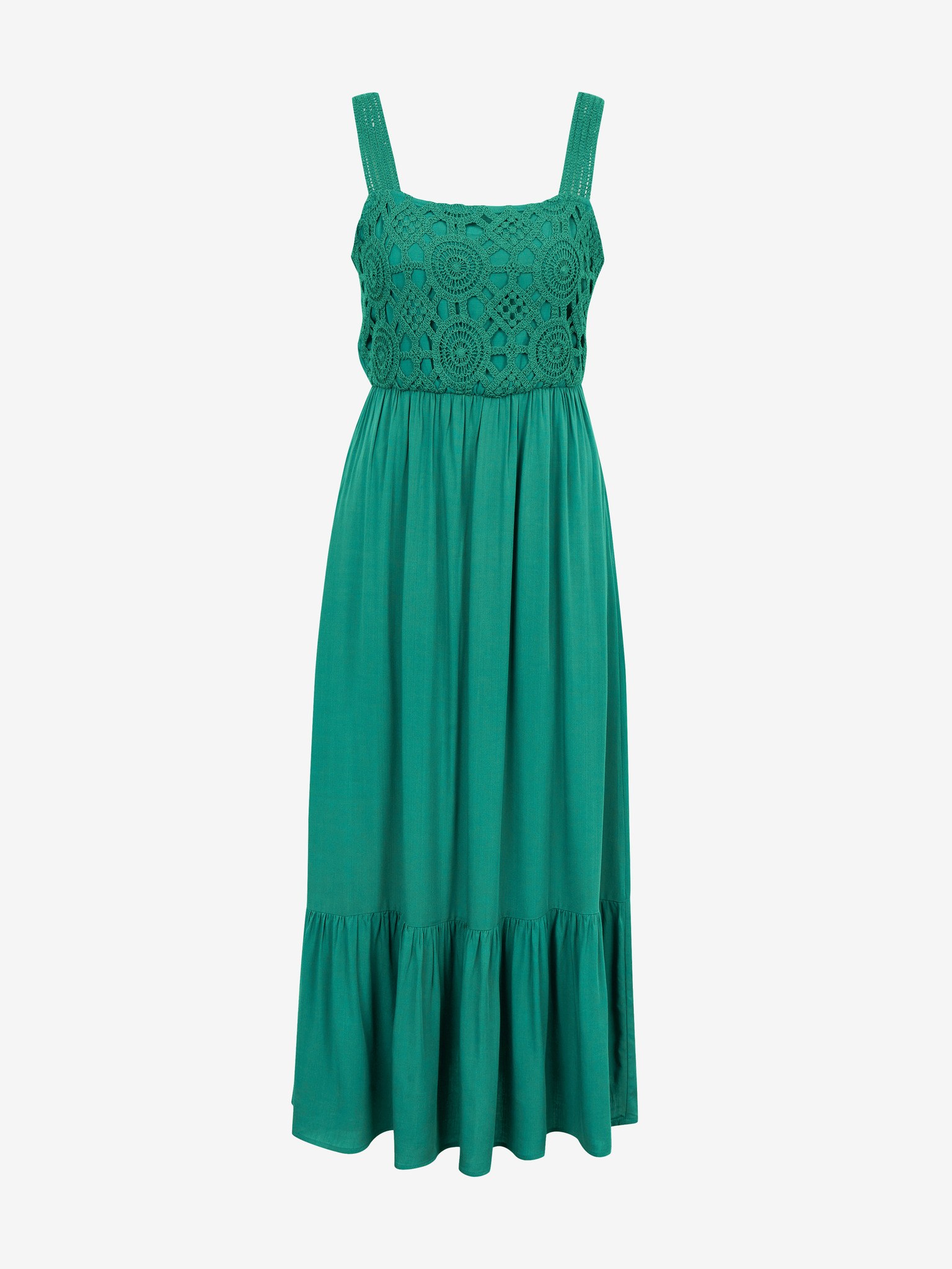 Maxi šaty na ramienka s korzetovým šnurovaním na chrbte a rozparkom - fľaškovo zelená
