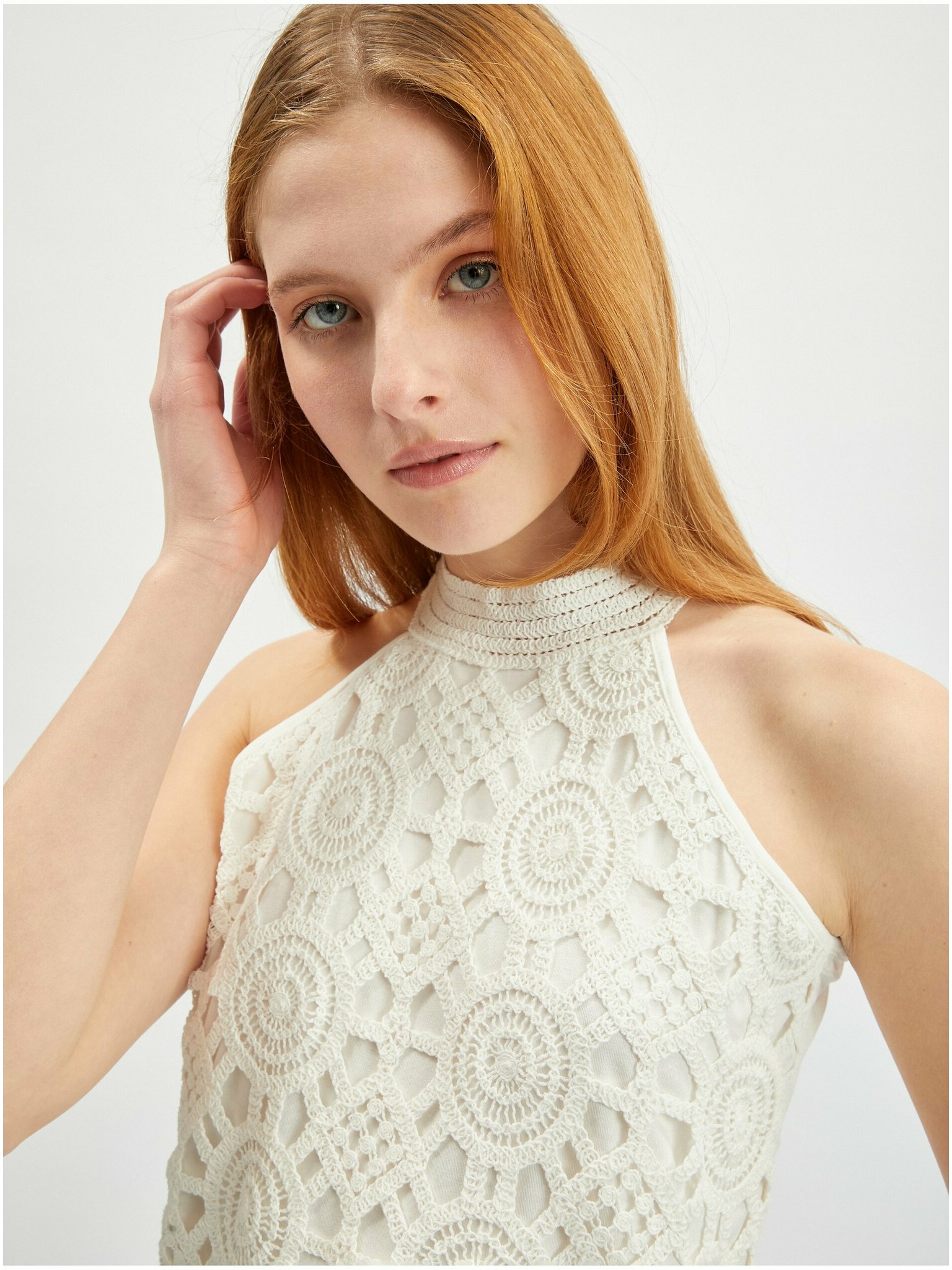 Krémový dámsky top bez rukávov