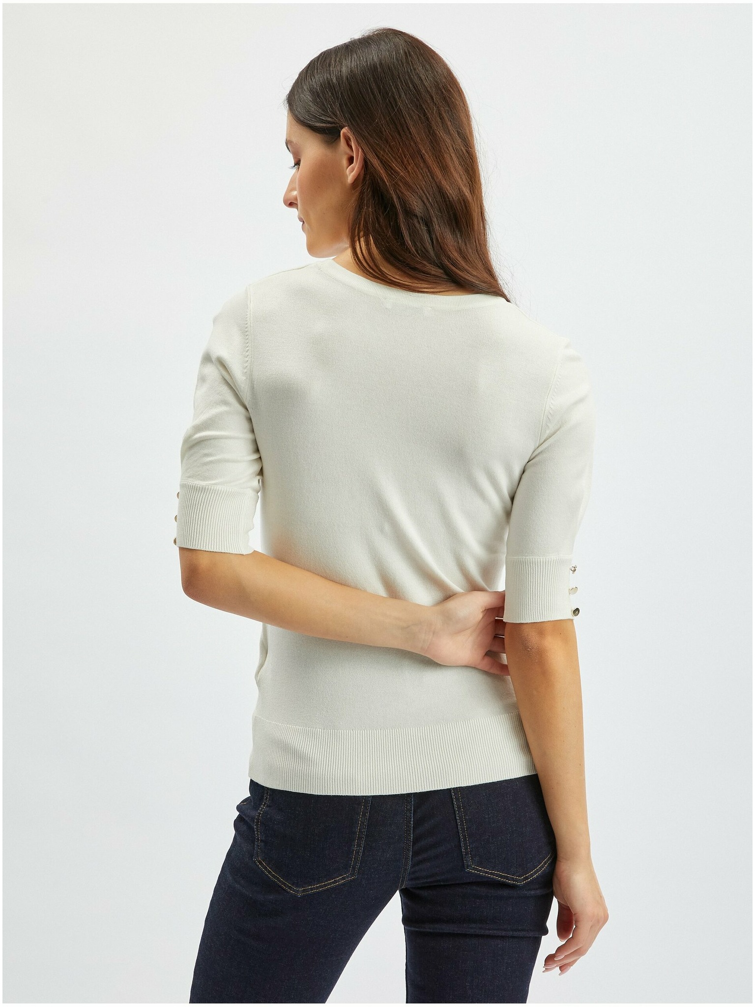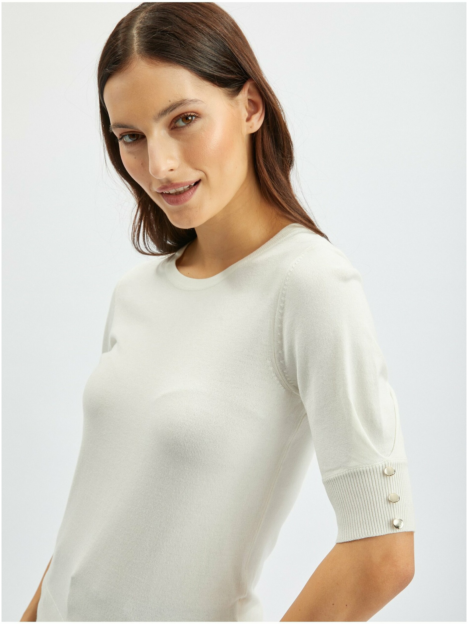 Biely krátky sveter s gombíkmi Moodo