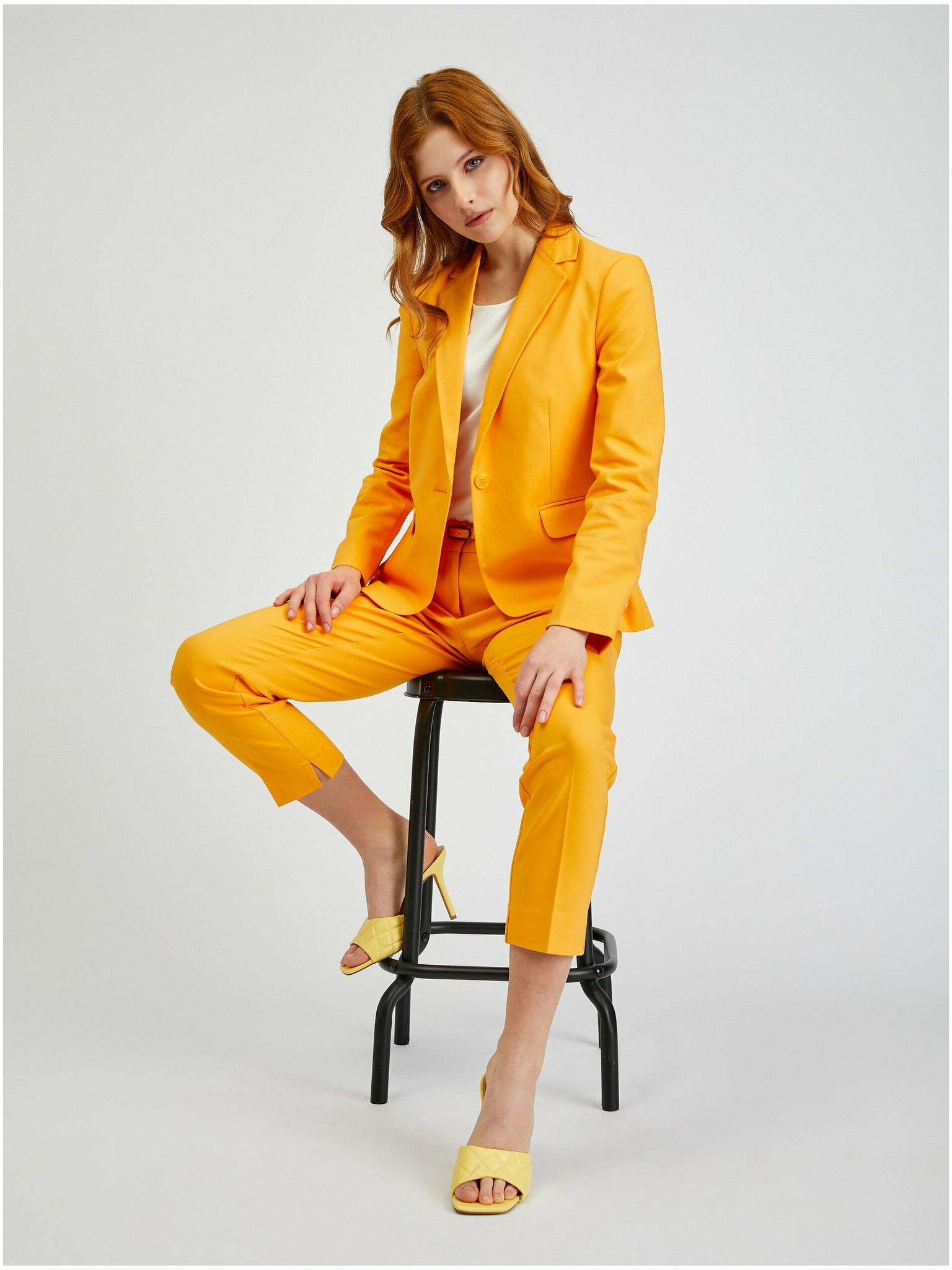 Oranžová dámska pruhovaná ľanová bunda ORSAY
