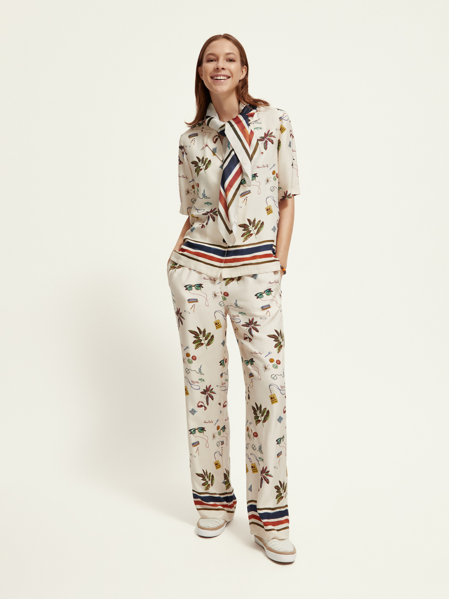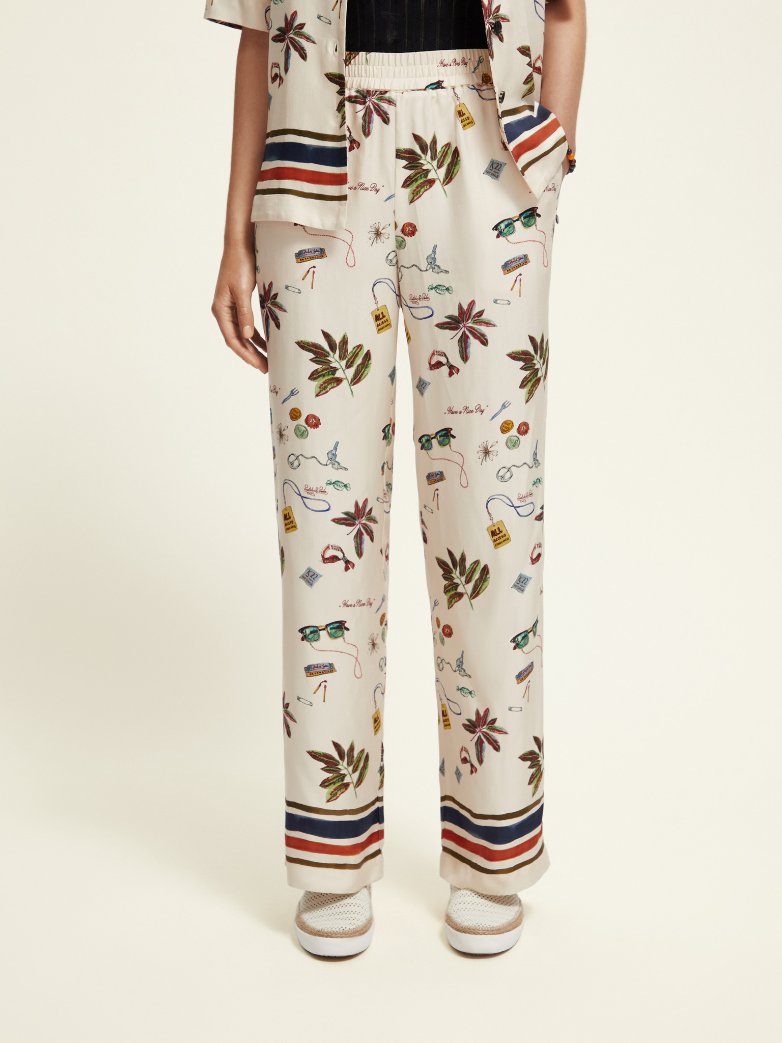 Krémové dámske vzorované nohavice Scotch & Soda Gia Starfish