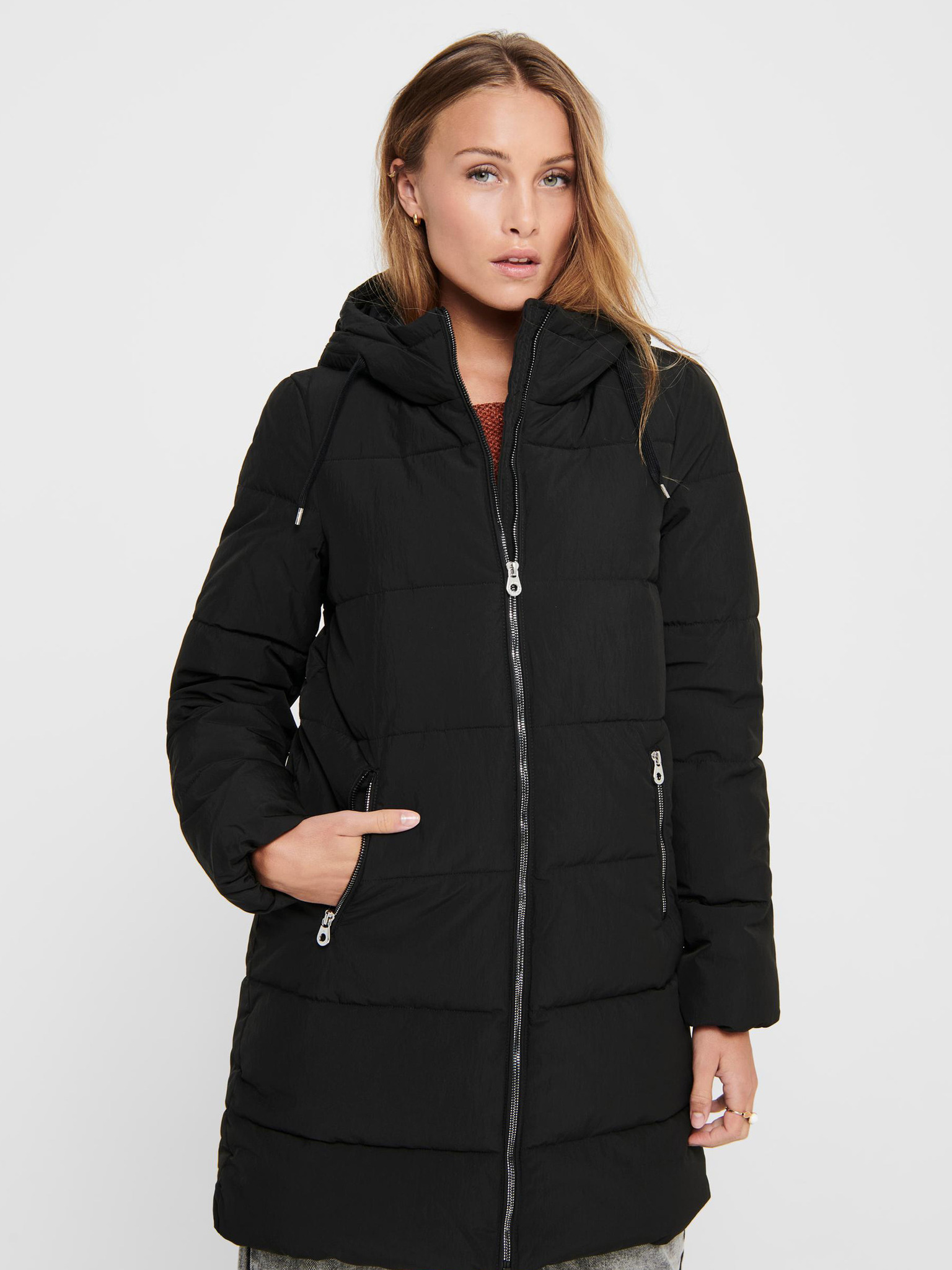 Čierny dámsky prešívaný páperový kabát ORSAY