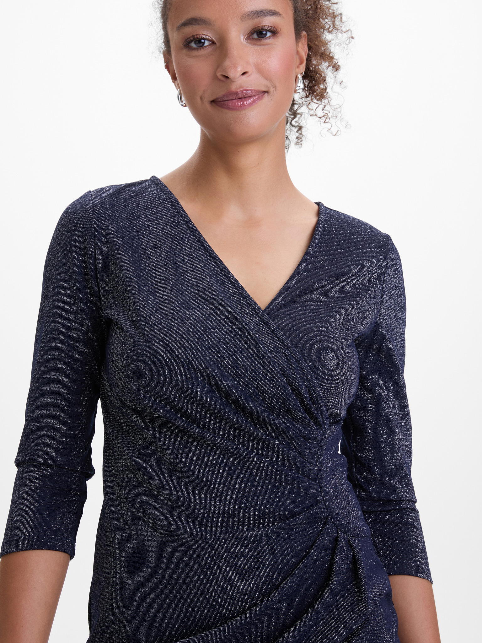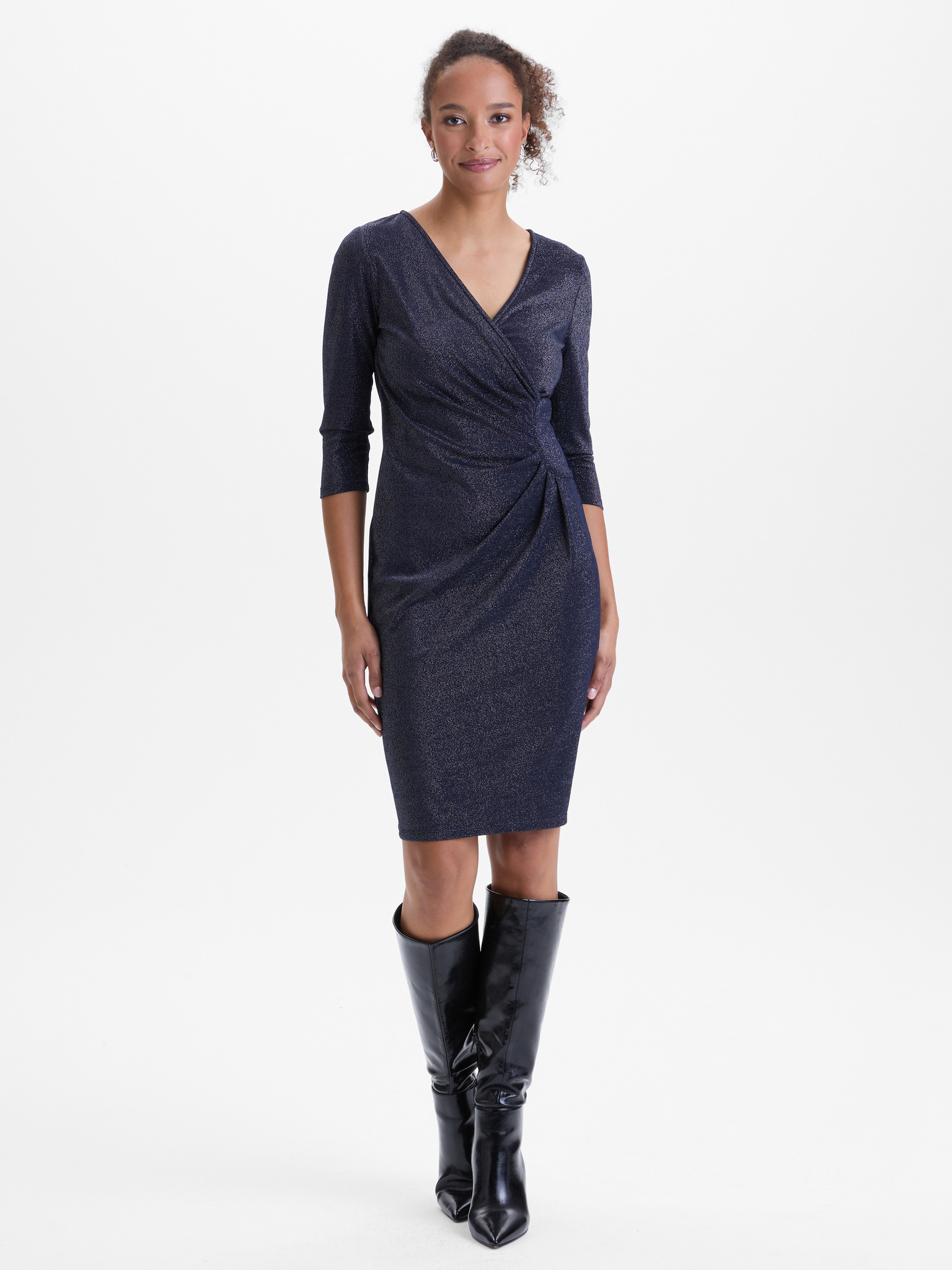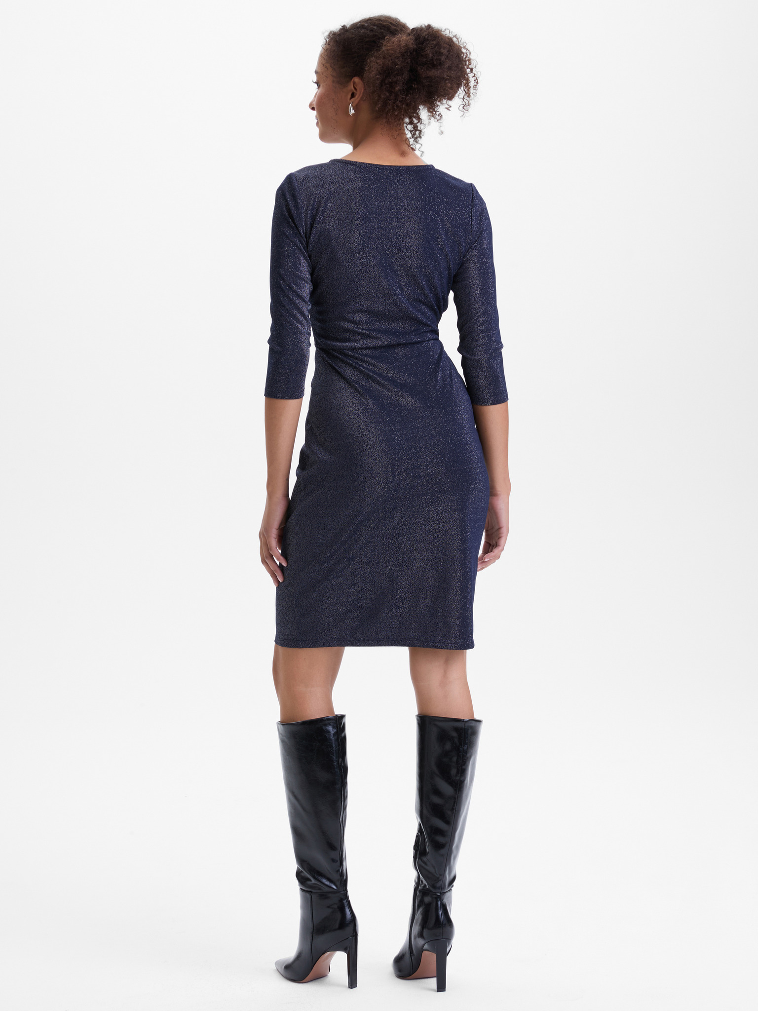 Šaty s výstrihom a krátkymi rukávmi - tmavomodré s trblietkami Numoco MATILDE