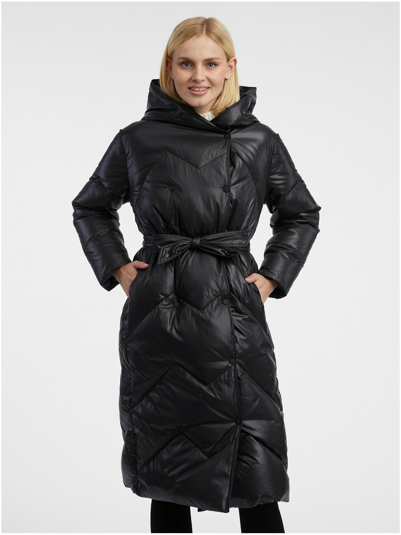 Čierny dámsky prešívaný páperový kabát ORSAY