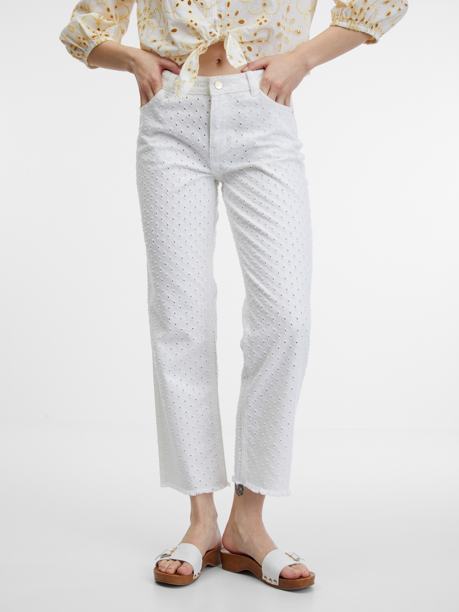 Biele rybičkové nohavice Moodo