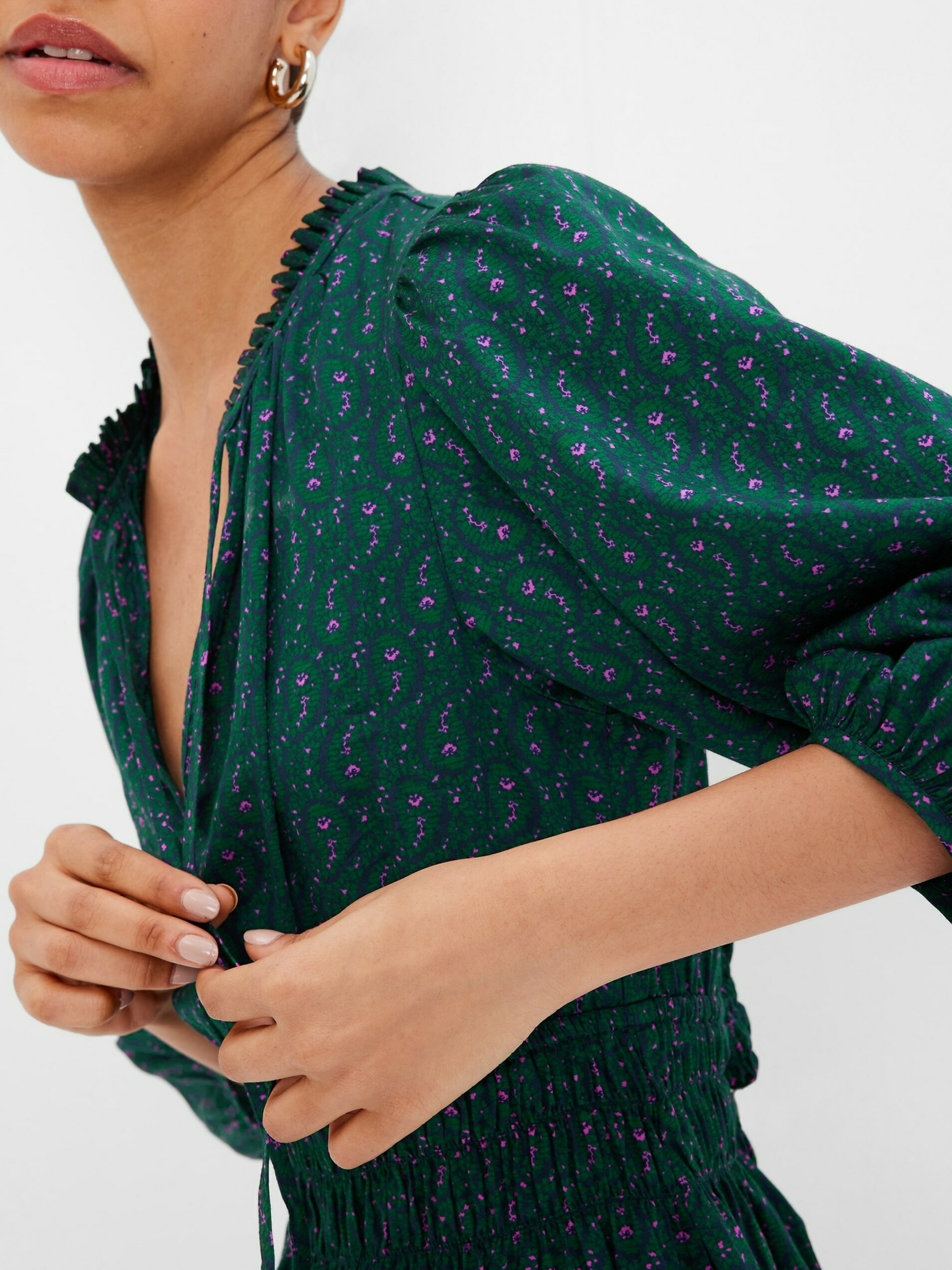 Zelené viskózové šaty s volánmi Moodo