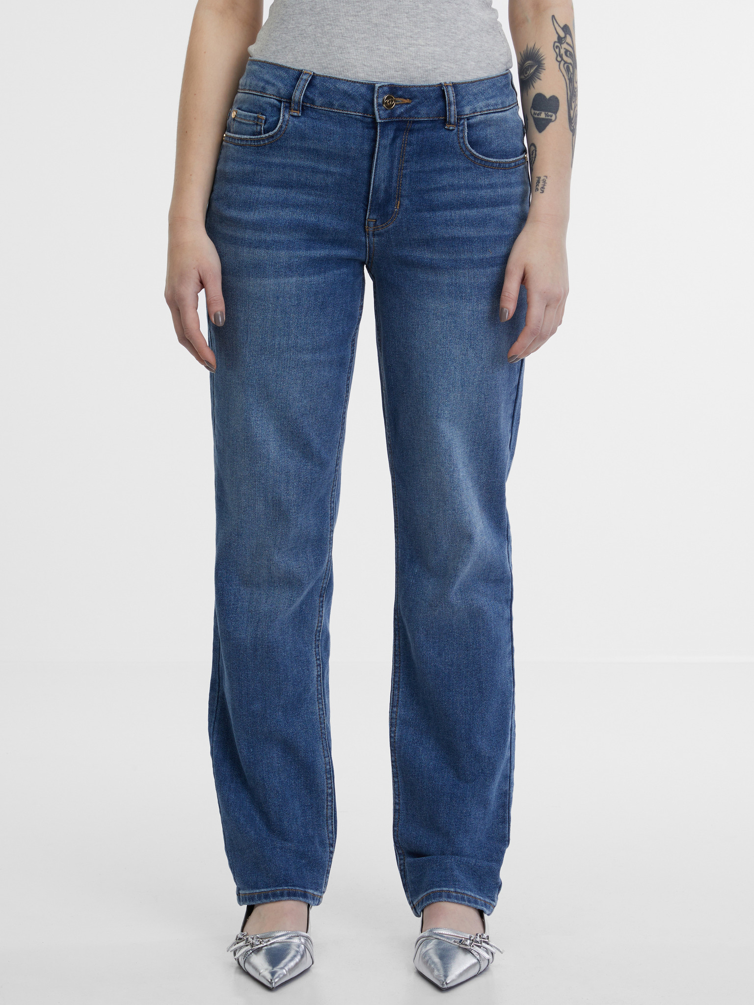Tmavomodré dámske džínsy rovného strihu ORSAY