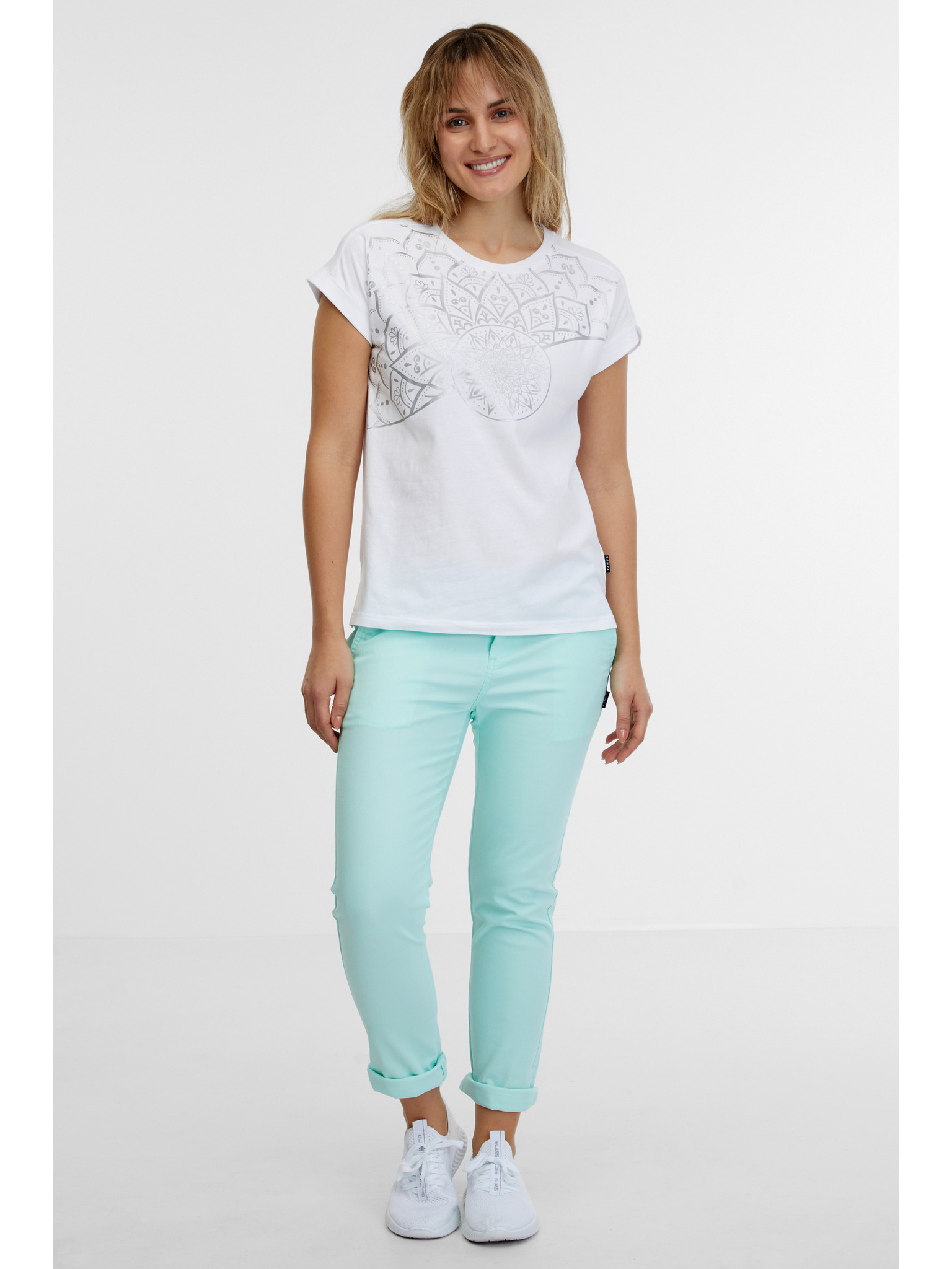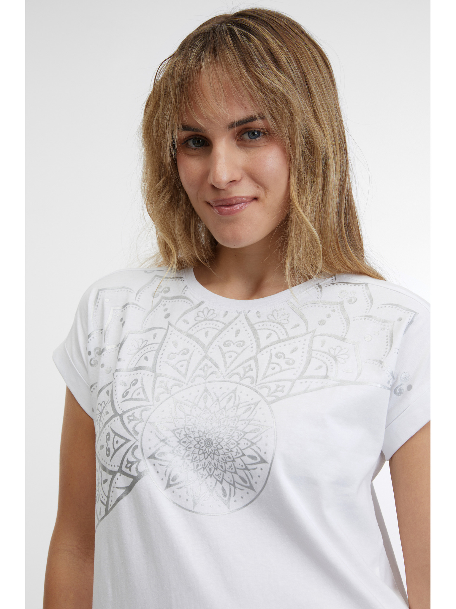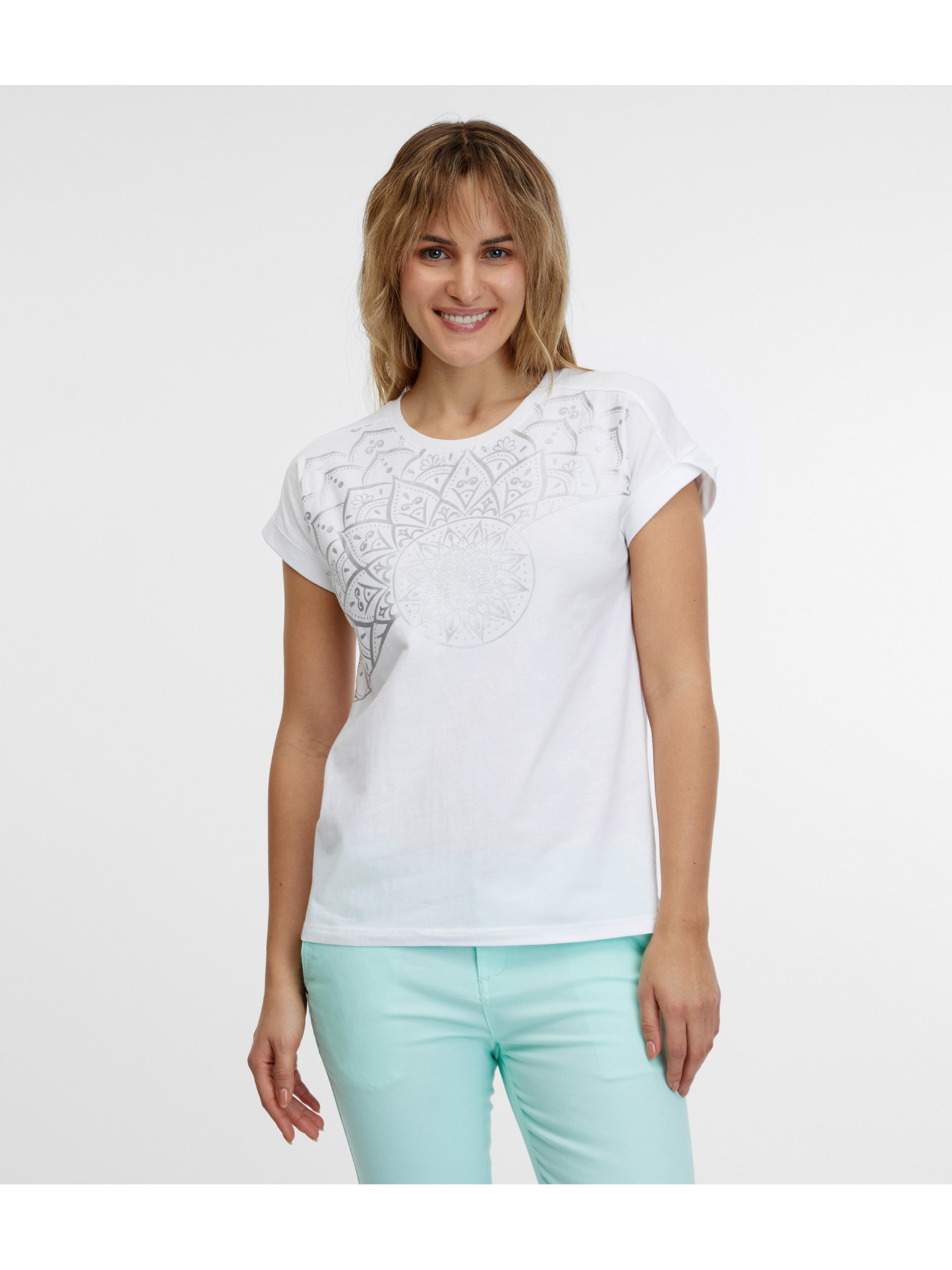 Dámske tričko so zdobeným výstrihom – biele