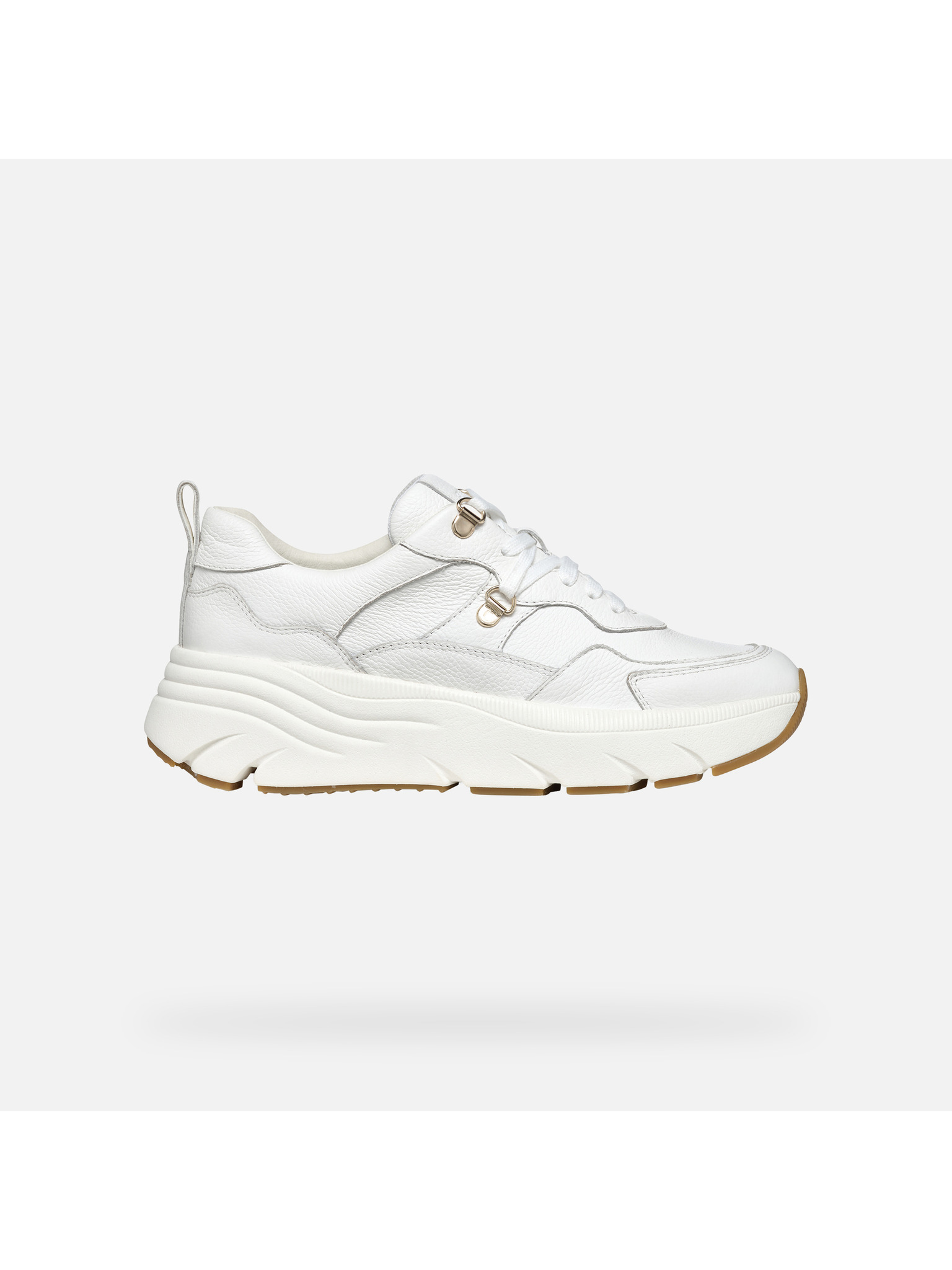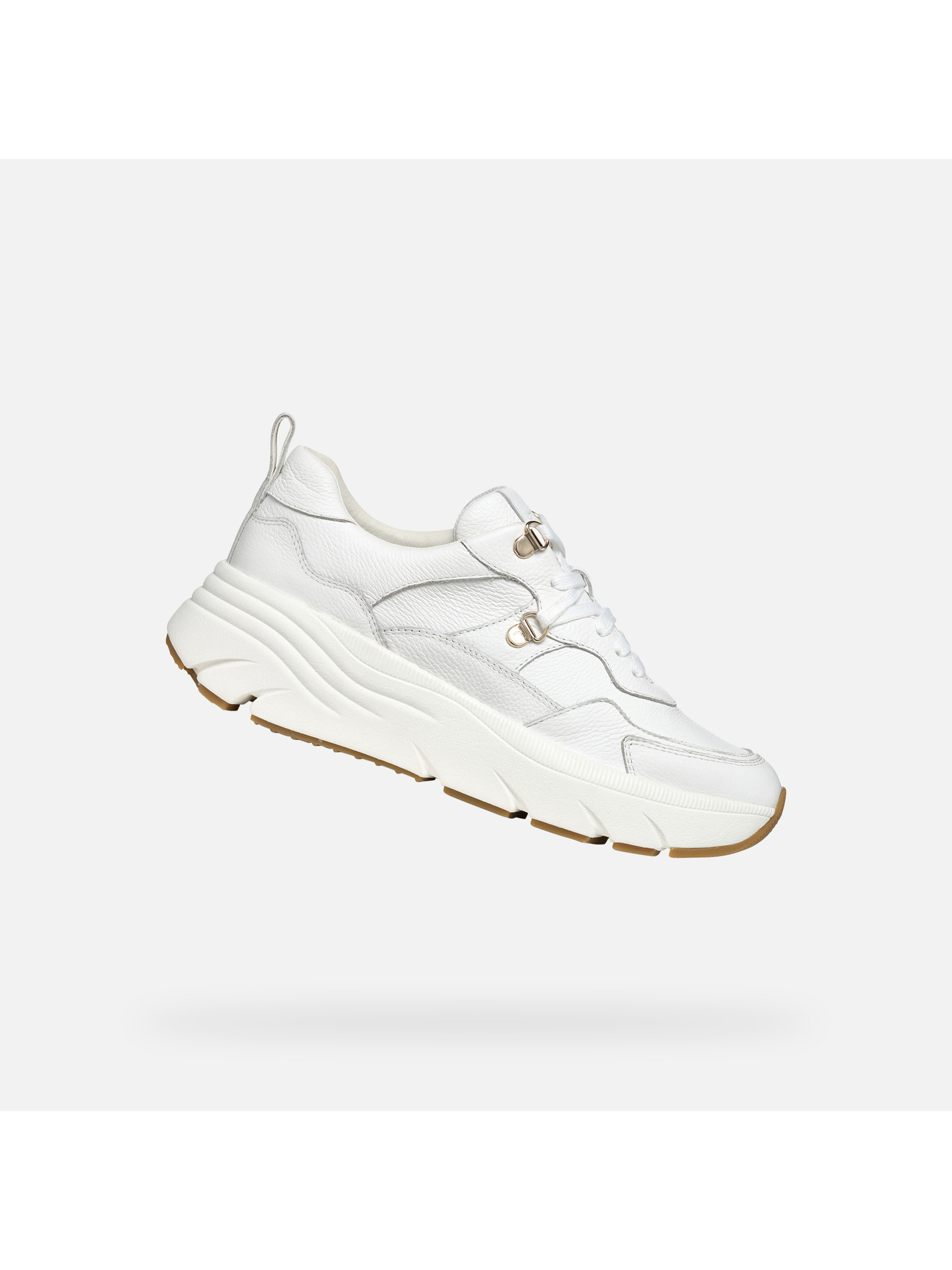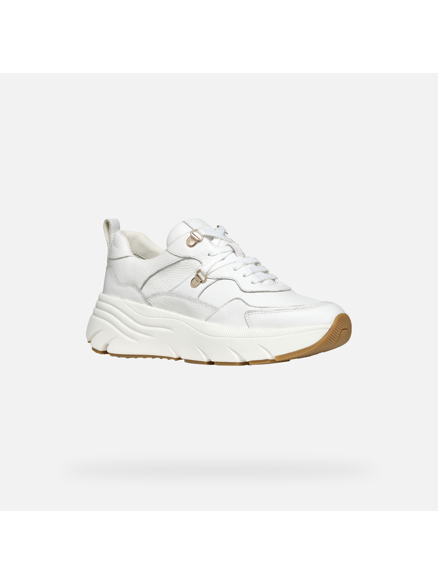 Elegantné dámske tenisky Geox Iamantha v bielom prevedení zaujmú čistými líniami a nadčasovým dizajnom. Texturovaný povrch s decentnými prešívanými detailmi dodáva topánkam jedinečný vzhľad, ktorý podčiarkuje biela farebnosť doplnená o zaujímavo riešenú svetlú podrážku.