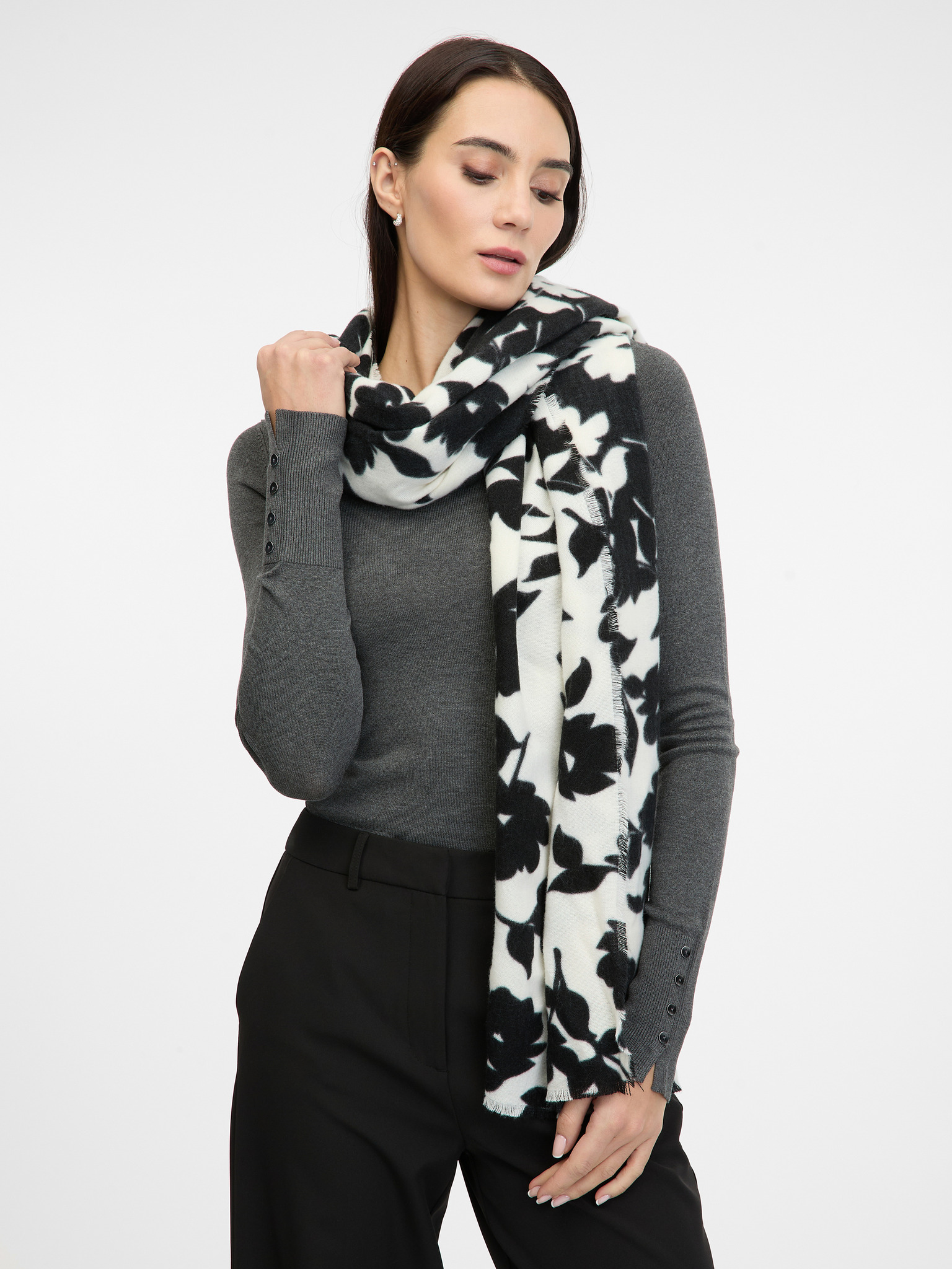 Bielo-čierny dámsky vzorovaný šál Moodo