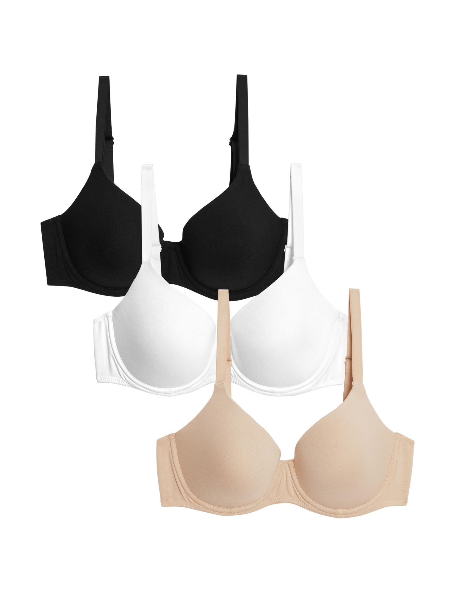 Marks & Spencer sada troch dámskych push-up podprseniek v béžovej, bielej a čiernej farbe s kosticami