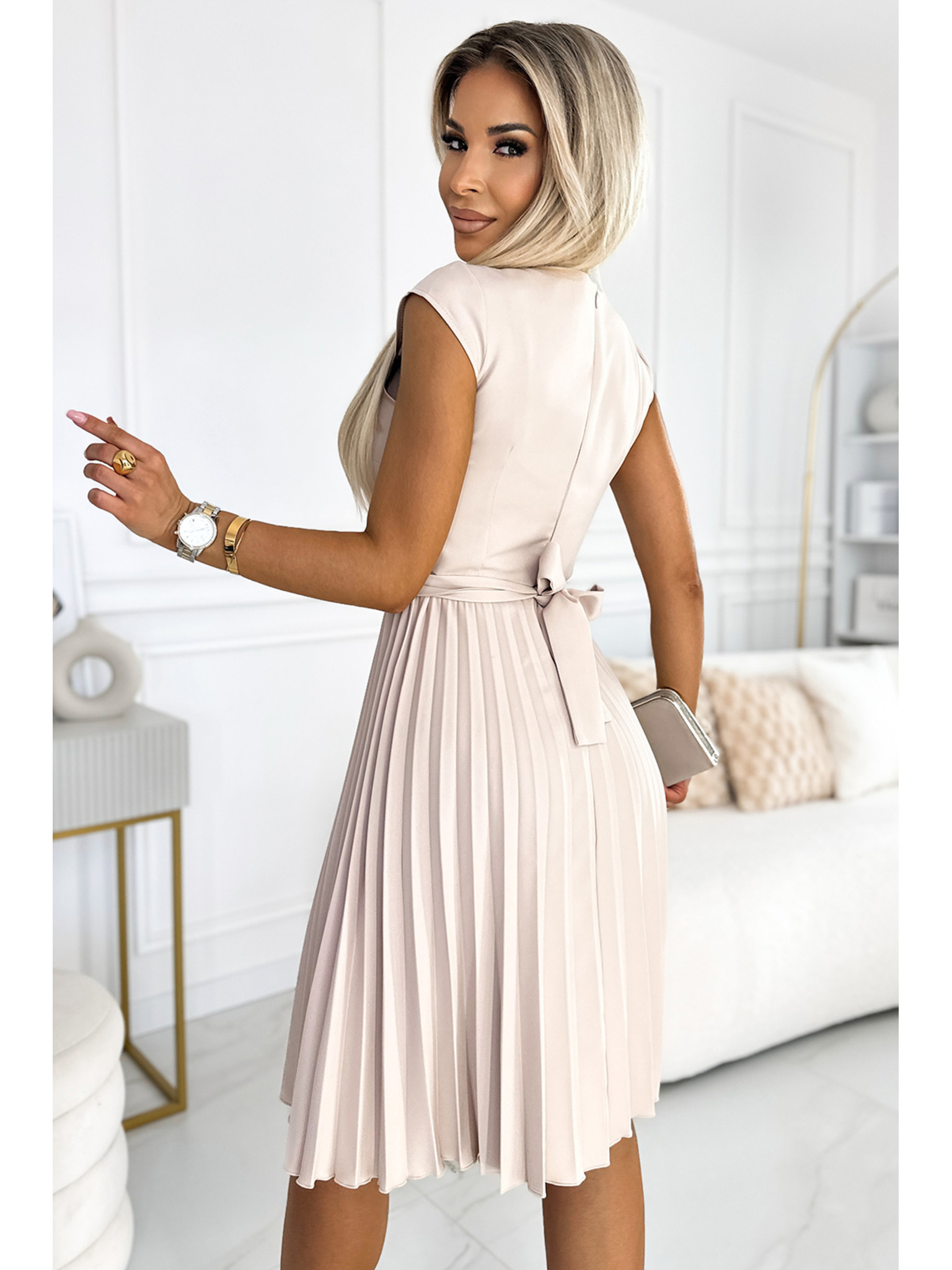 Šaty s listovým výstrihom - béžové Numoco NINA