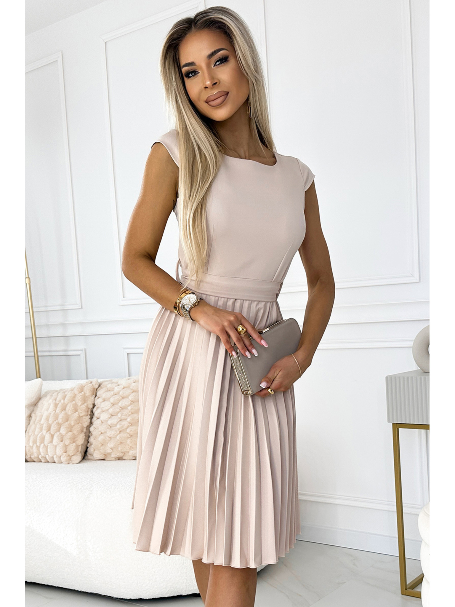 Šaty s rozšíreným výstrihom - béžové Numoco SCARLETT