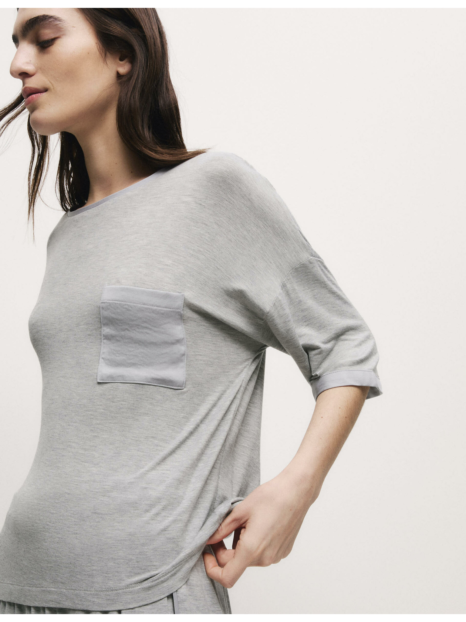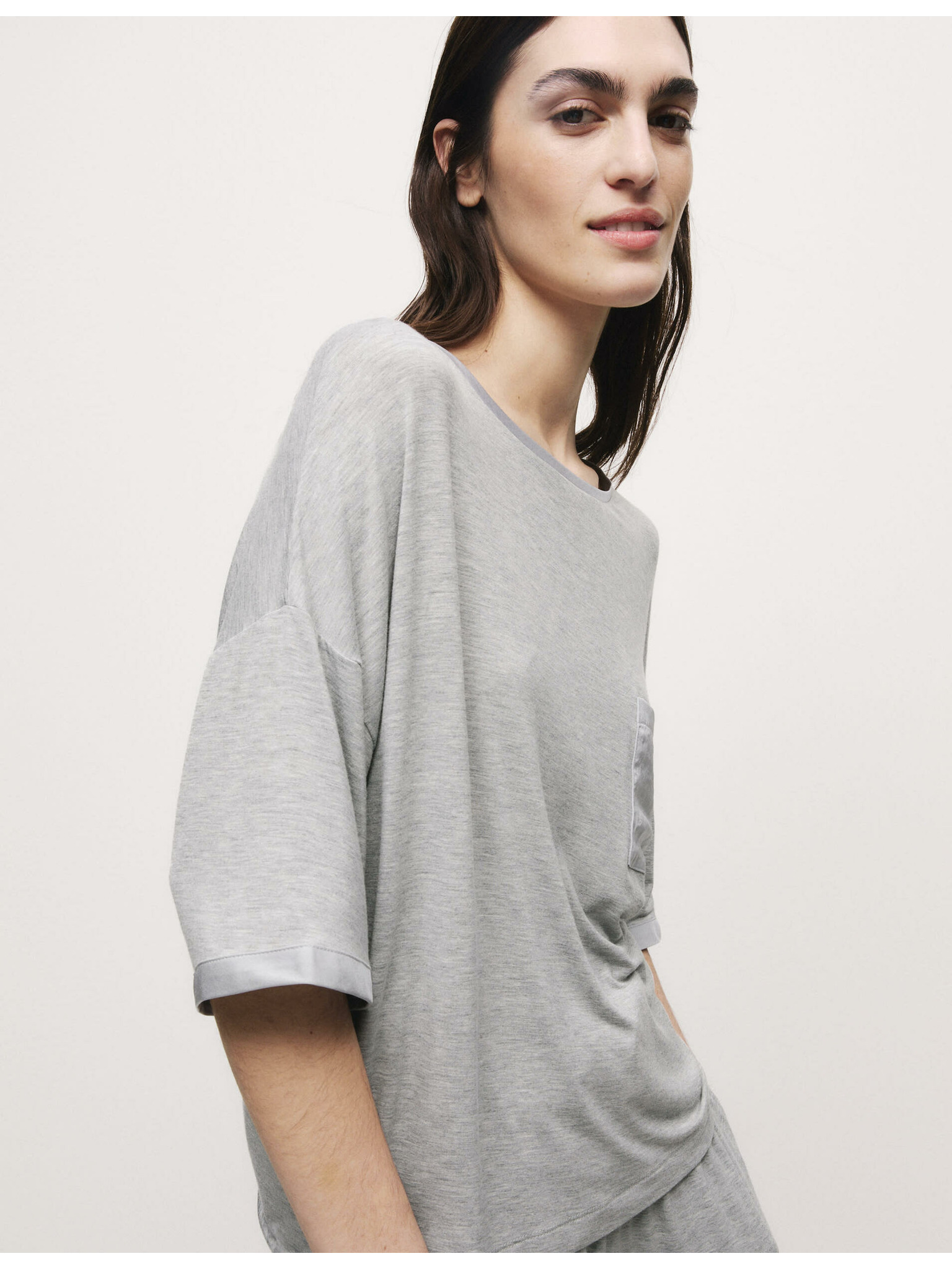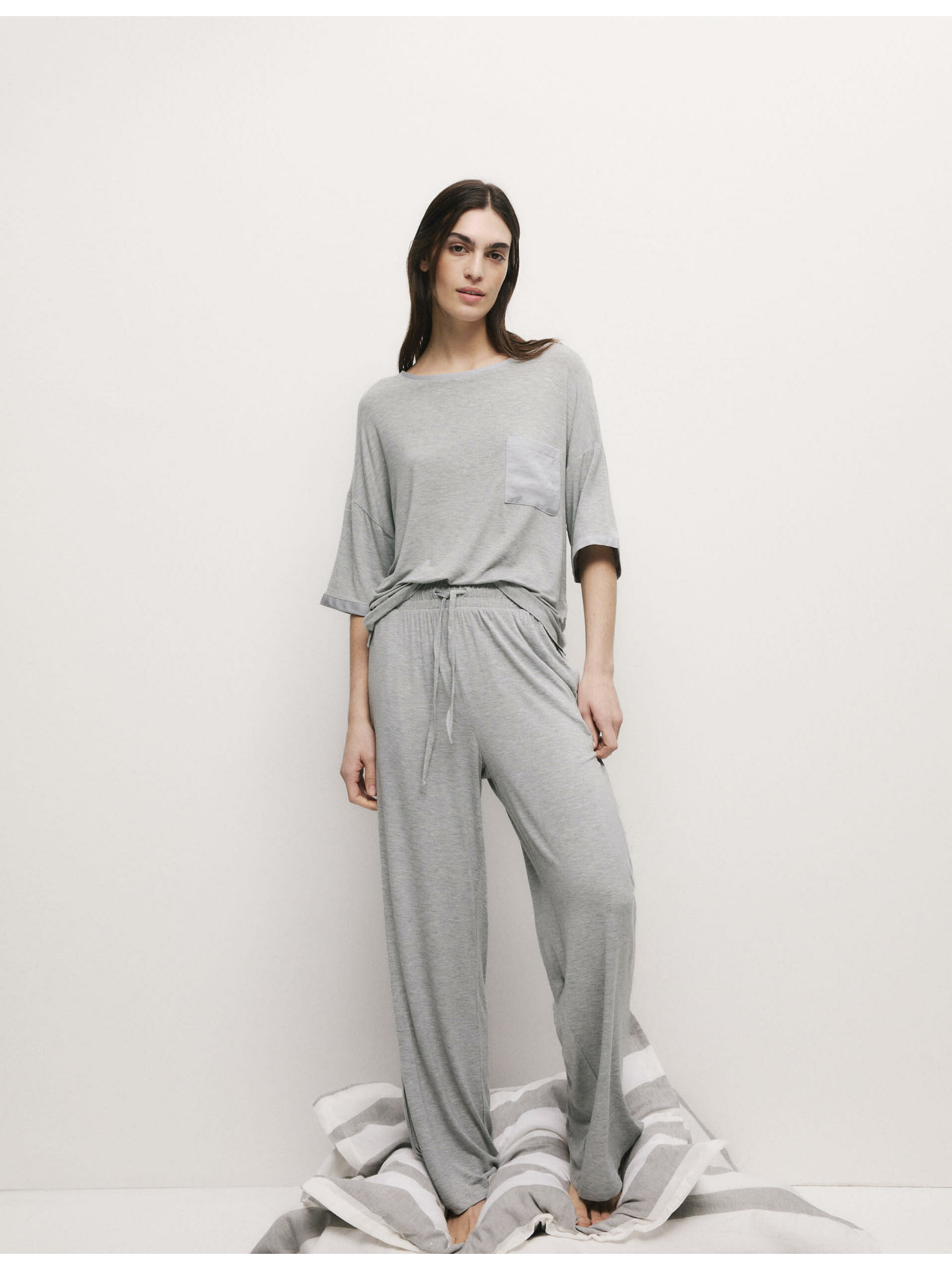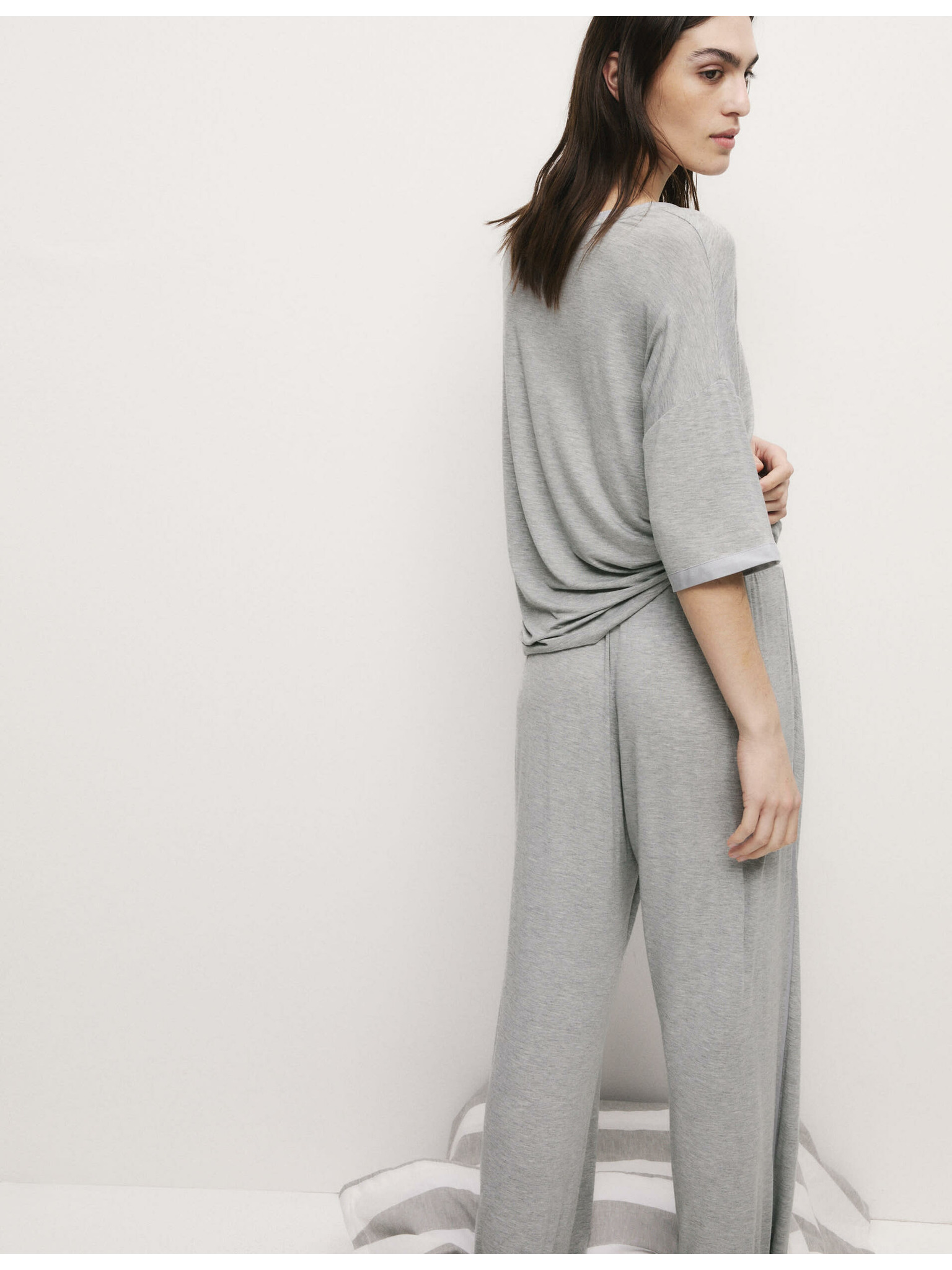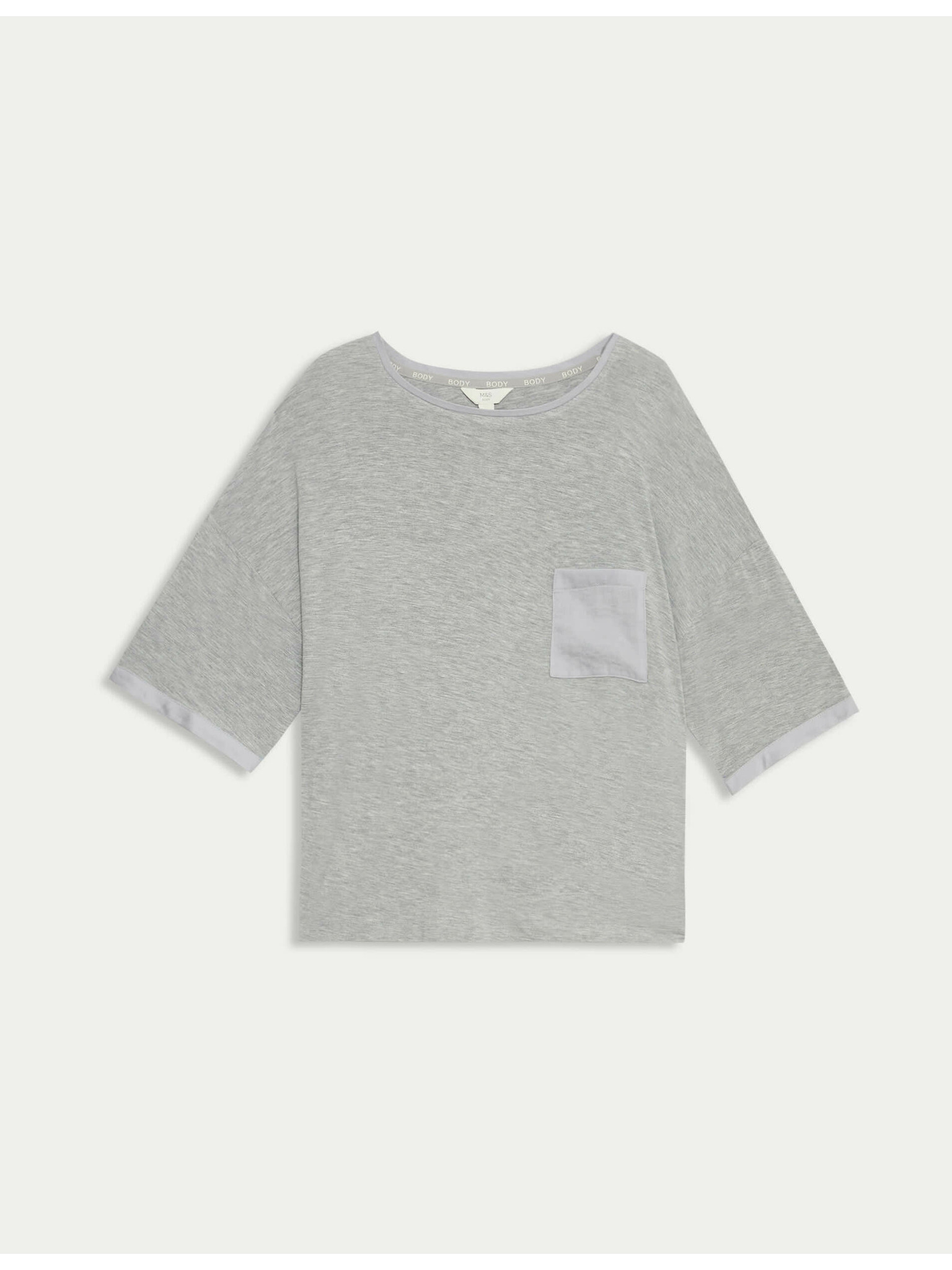 Rebrovaný pyžamový top s výstrihom ku krku a dlhými rukávmi Marks & Spencer sivá