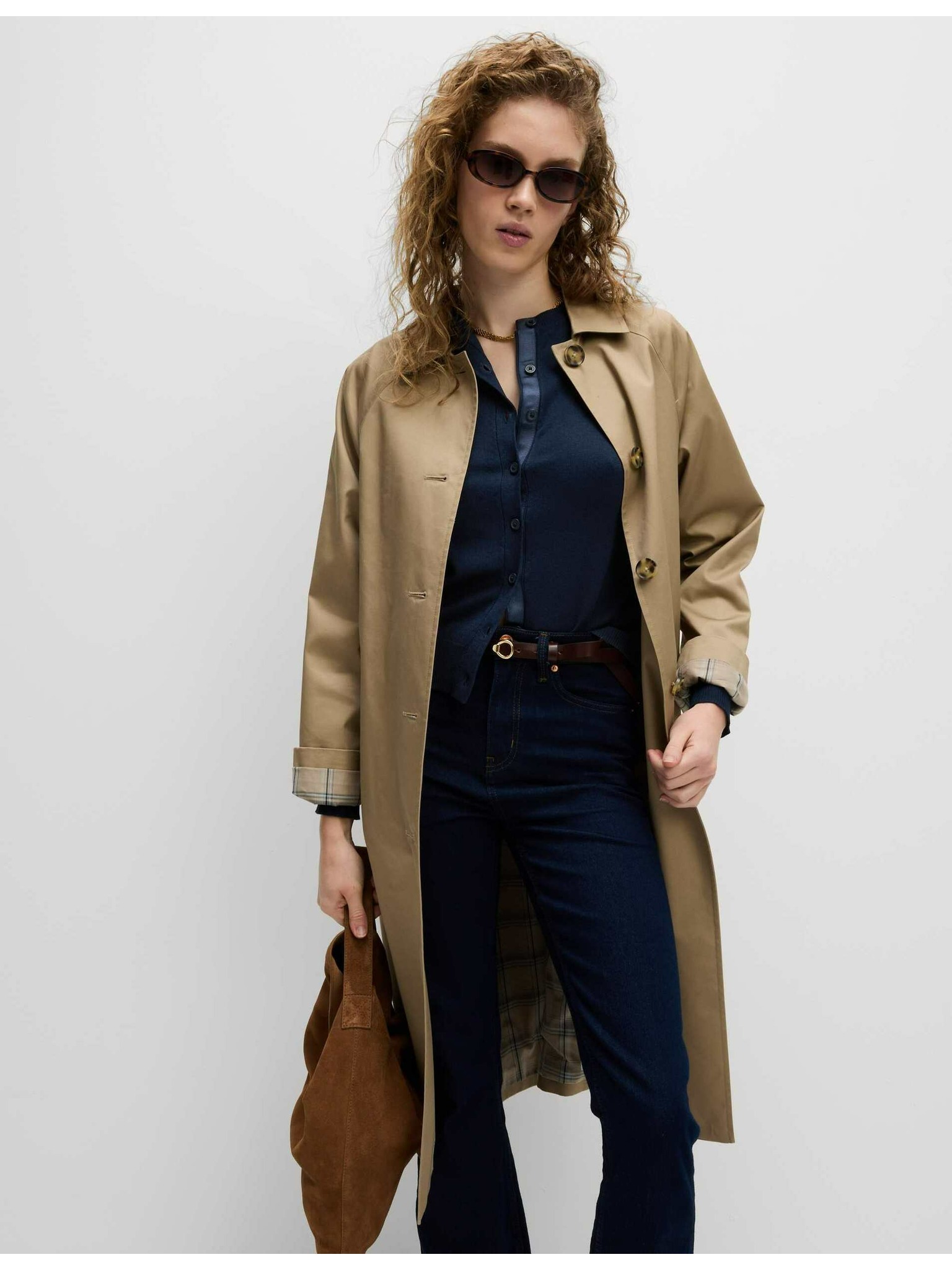 Dlhý rebrovaný kardigán bez zapínania Marks & Spencer námornícka modrá
