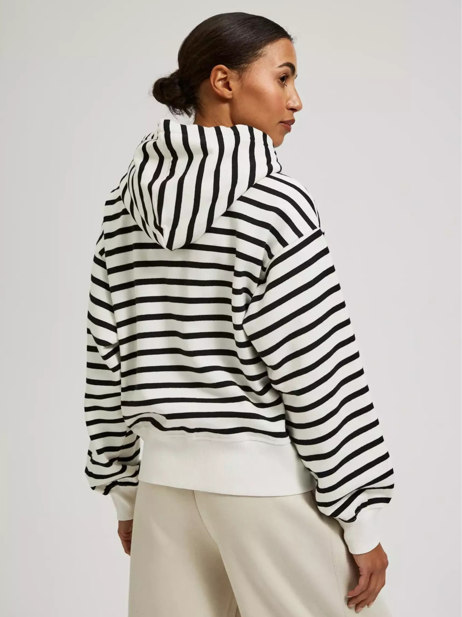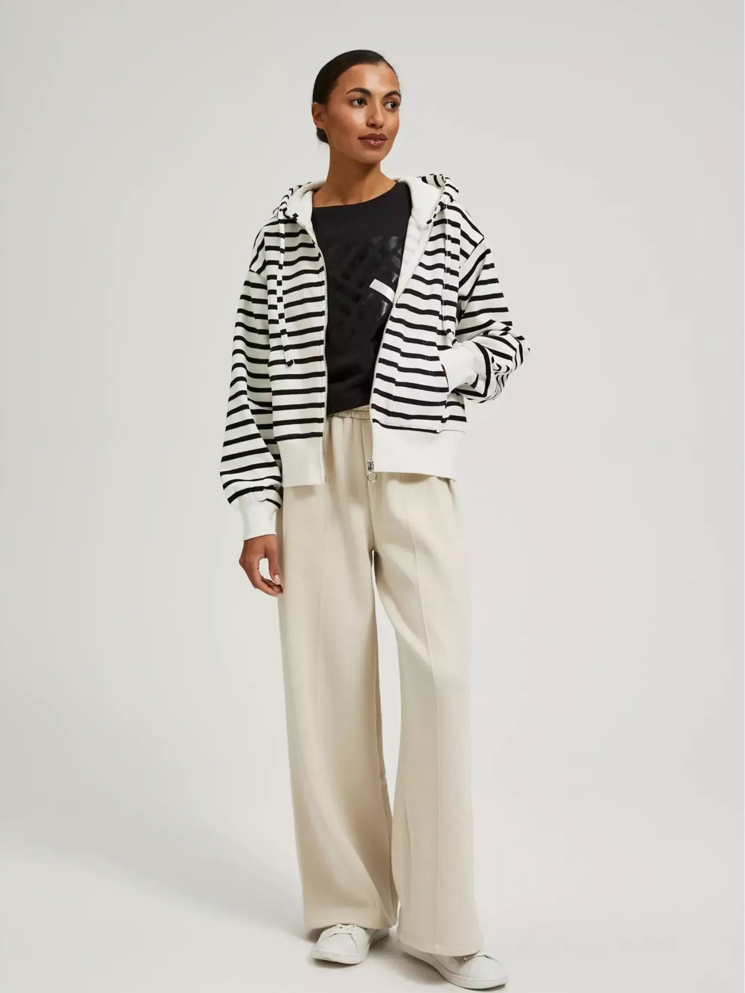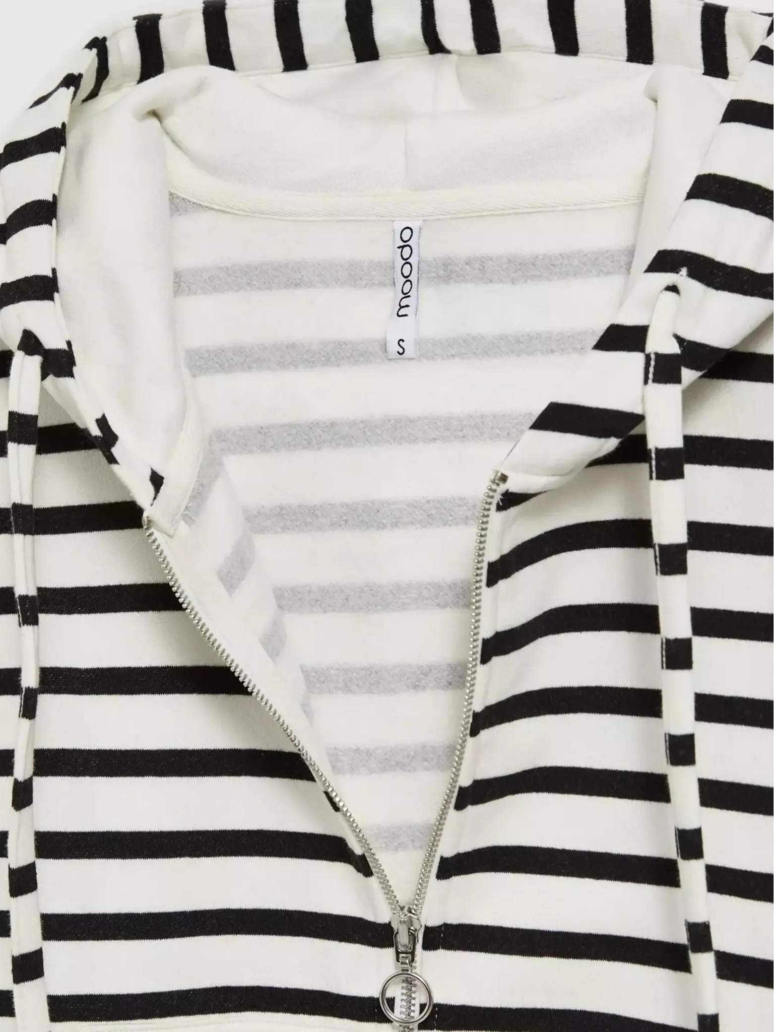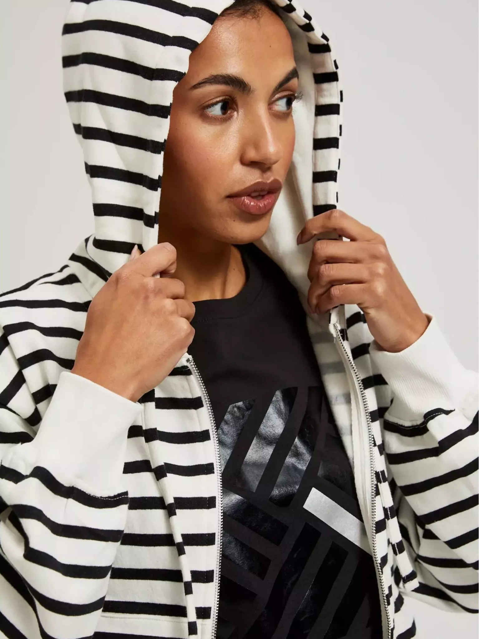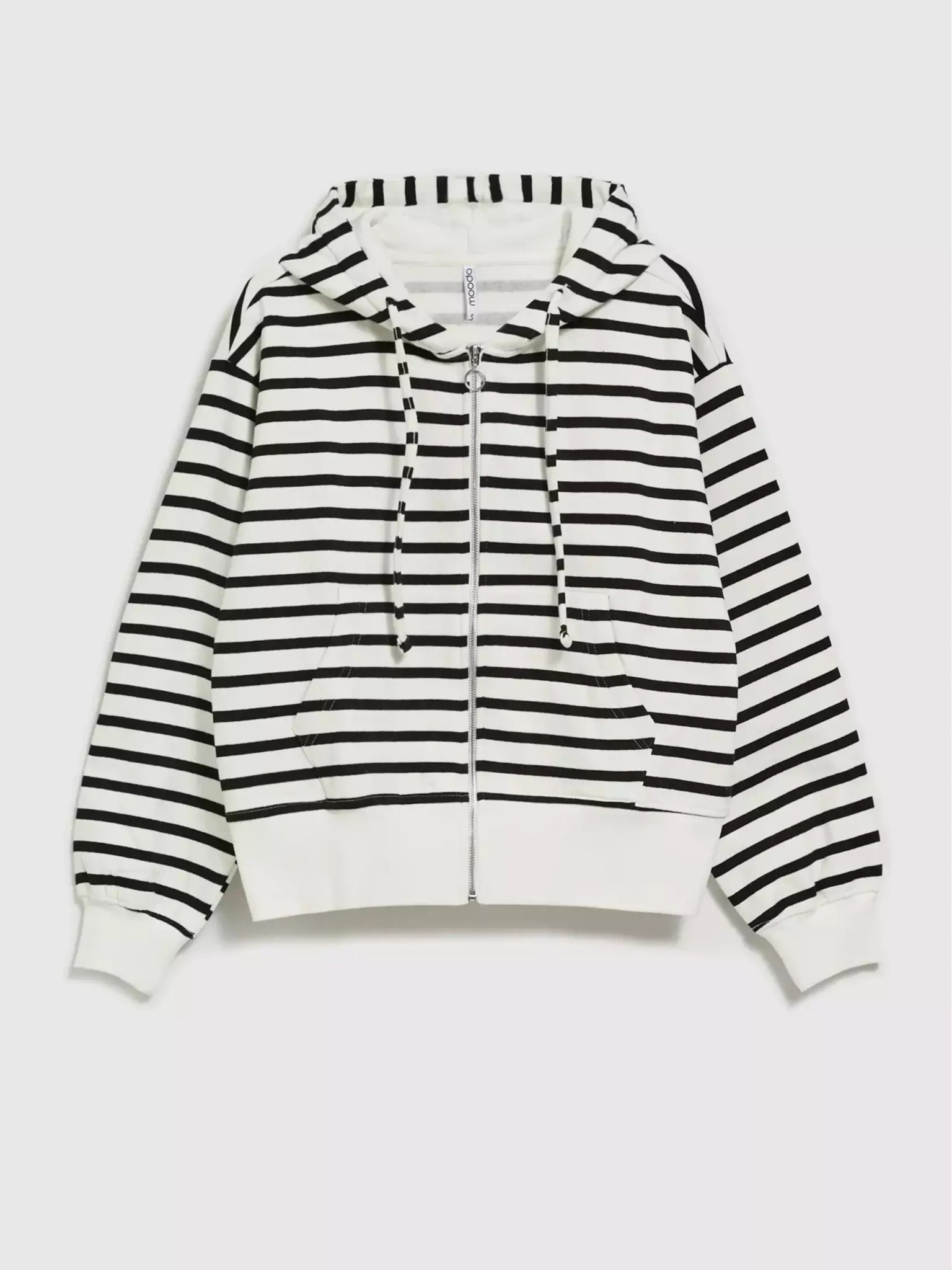 Čiernobiela tenká pruhovaná mikina s kapucňou na zips Moodo