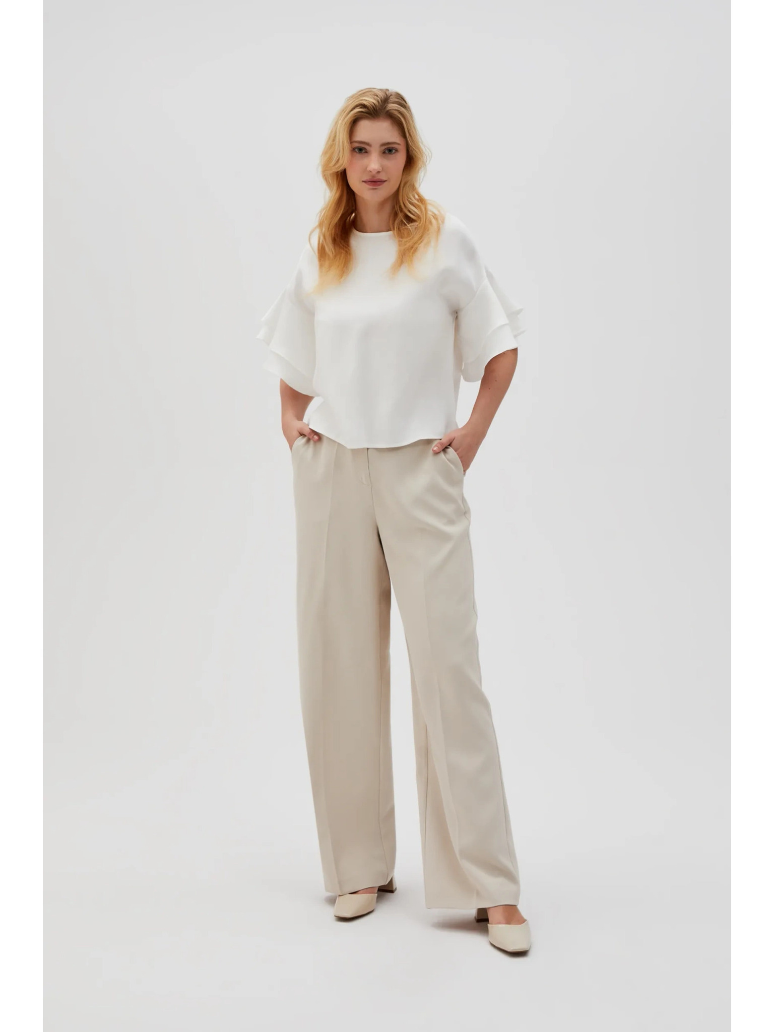 Béžové nohavice so širokými nohavicami a gombíkmi Moodo