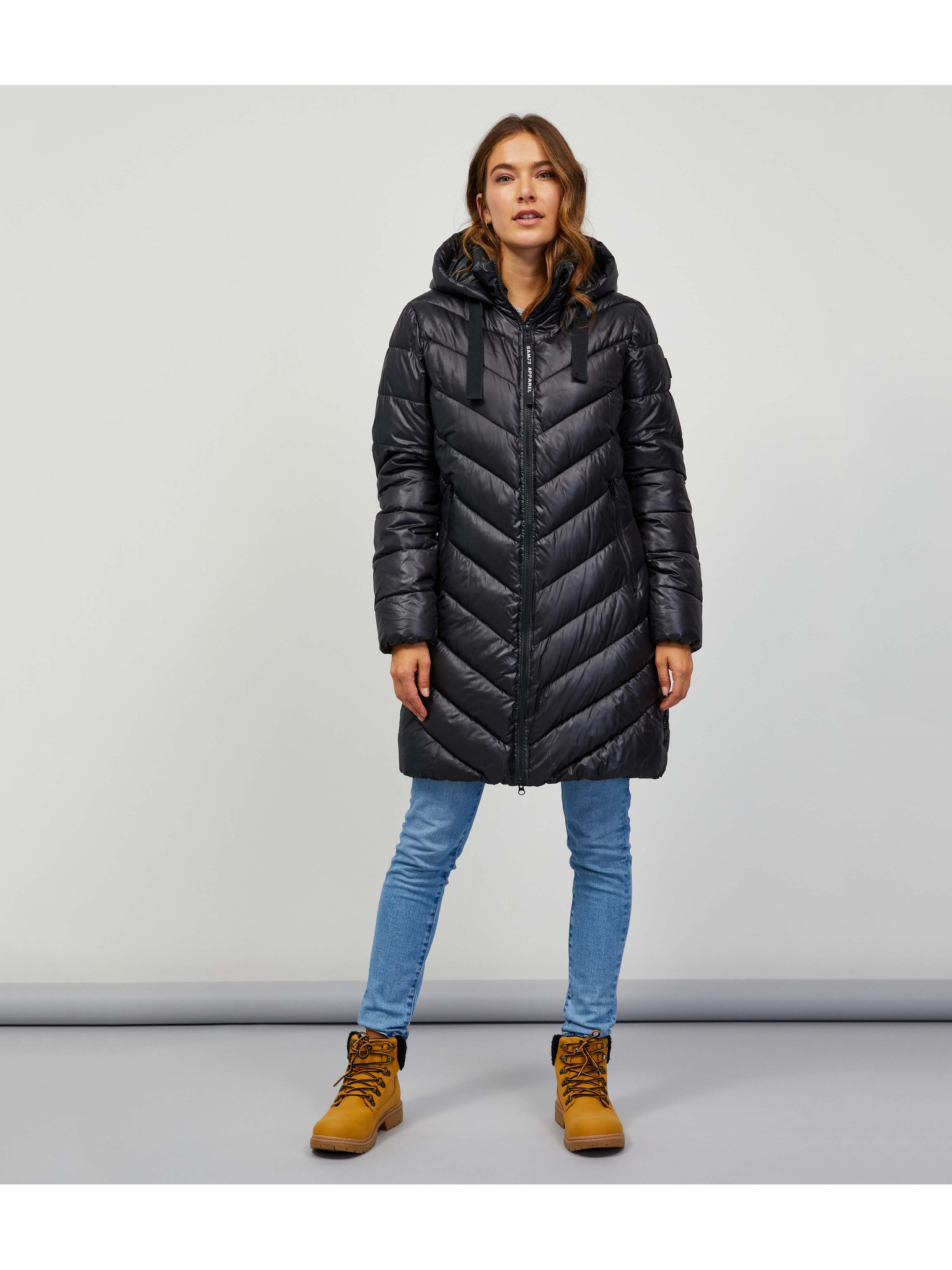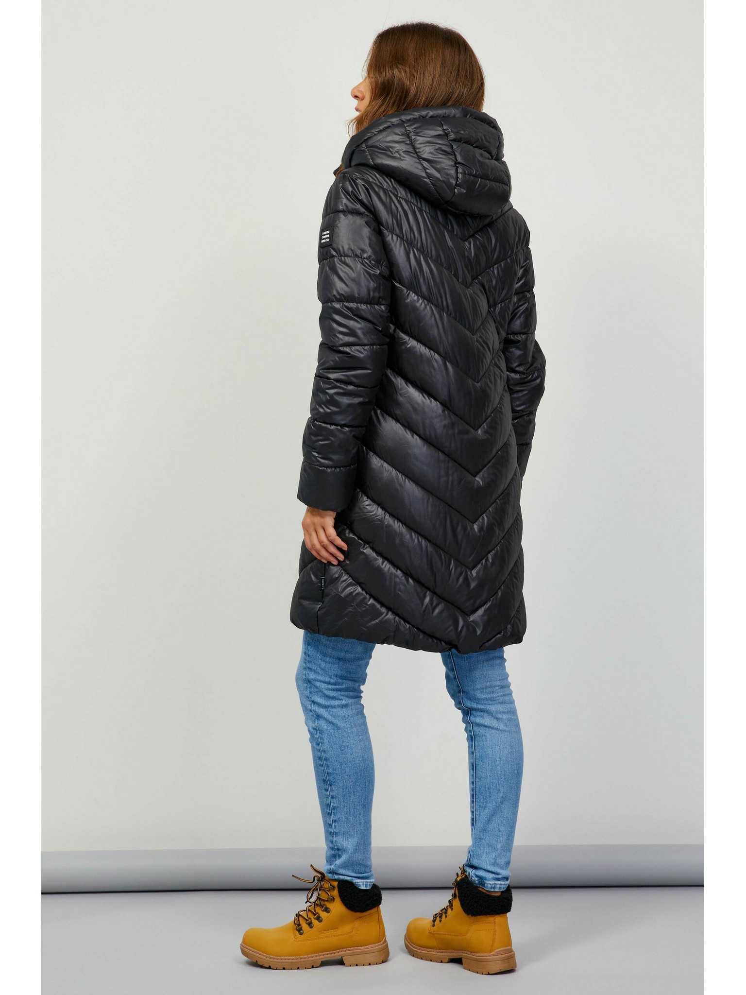 Čierny dámsky prešívaný ľahký kabát s golierom ZOOT.lab Sienna