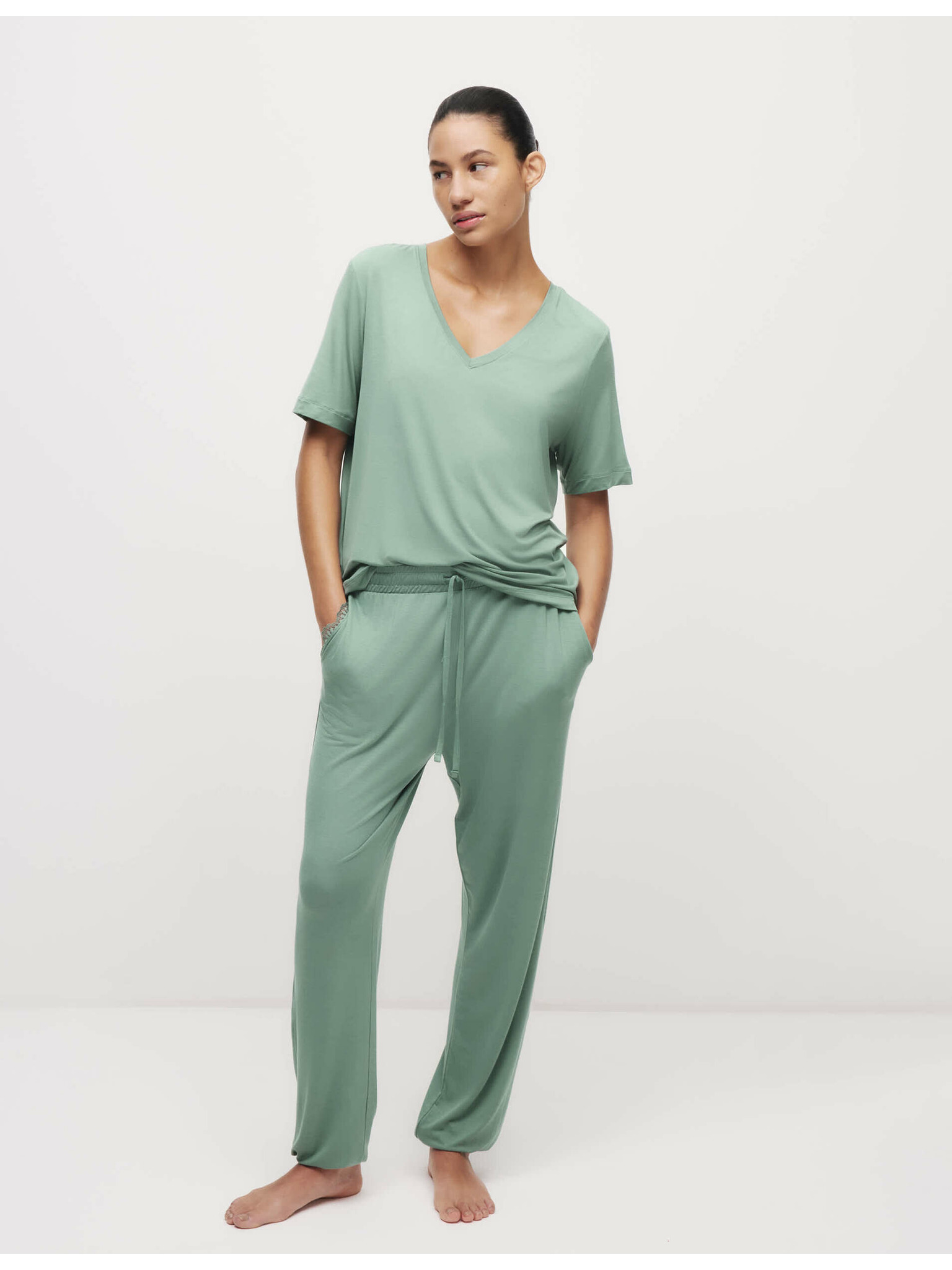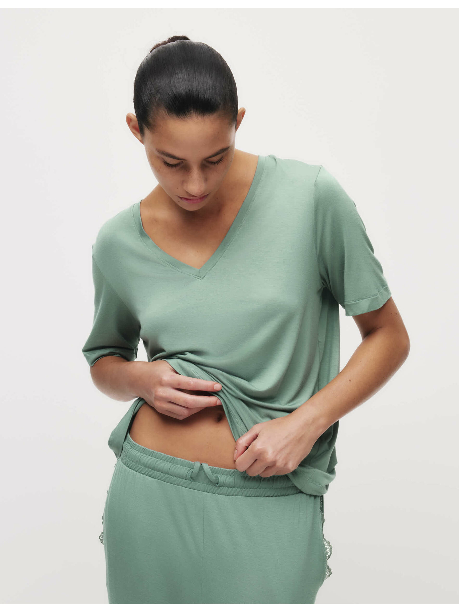 Pyžamový top s čipkovým detailom Marks & Spencer zelená