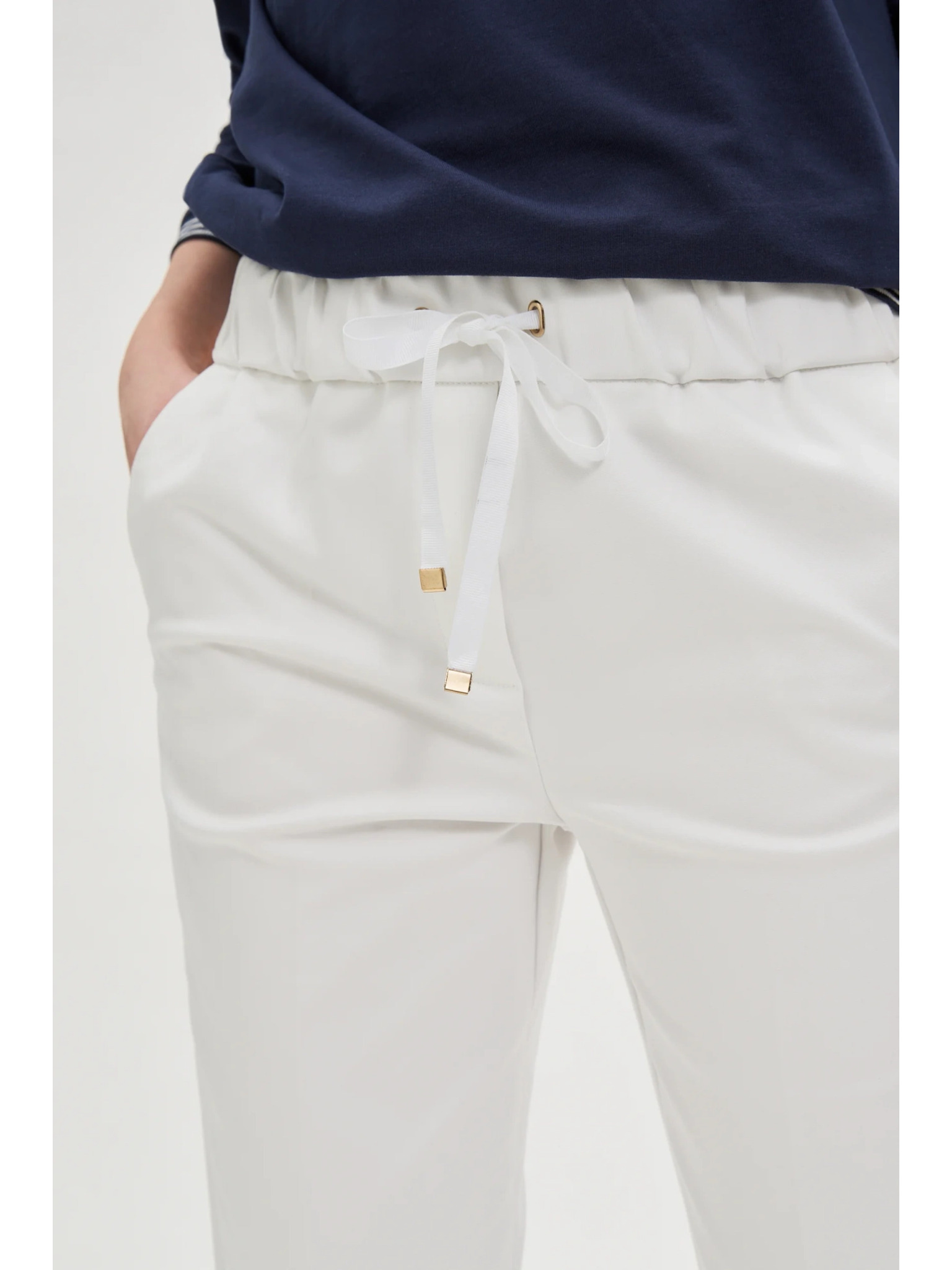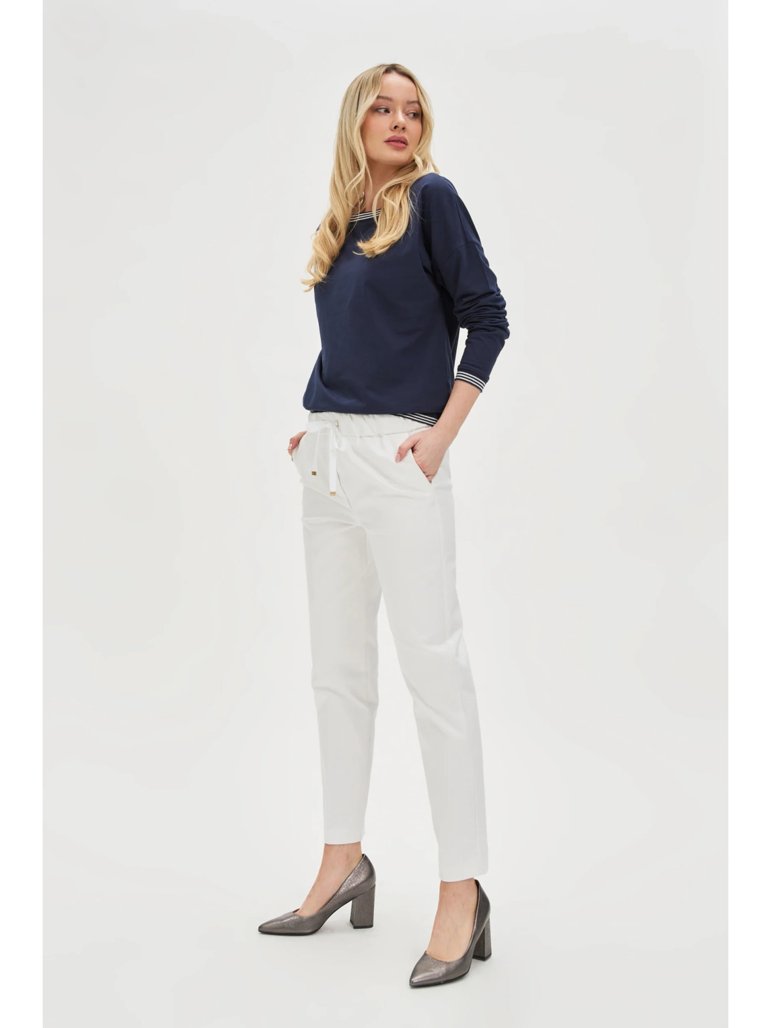 Biele dámske nohavice s opaskom Moodo