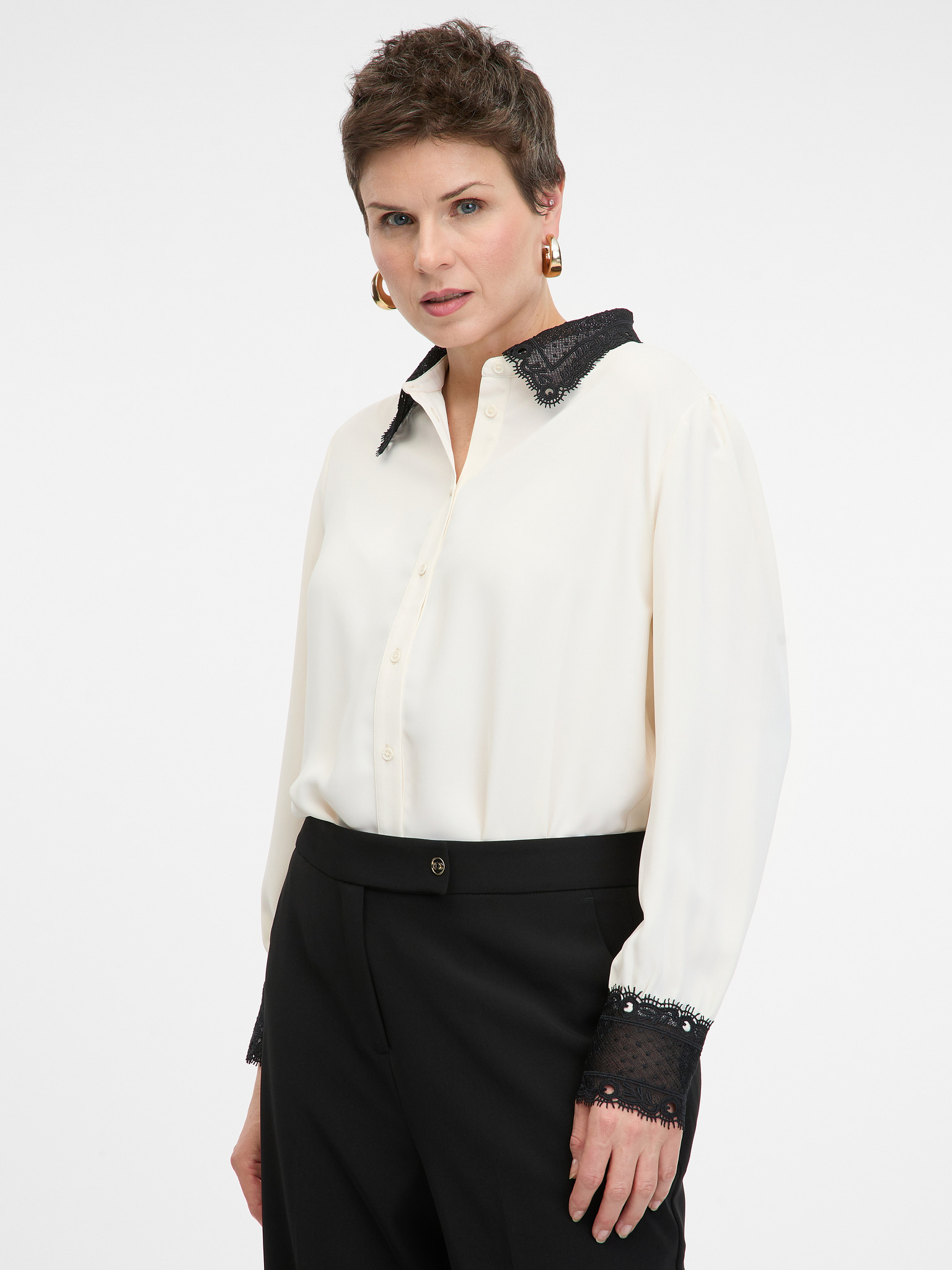 Biela blúzka s vyhrnutými rukávmi Moodo